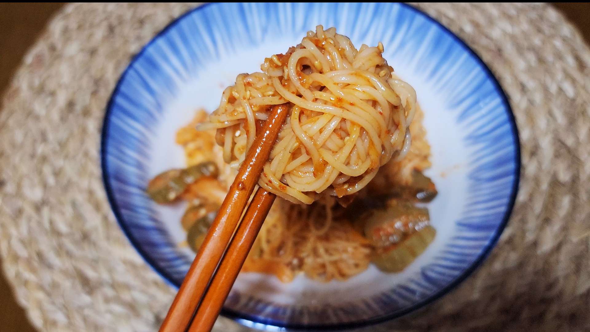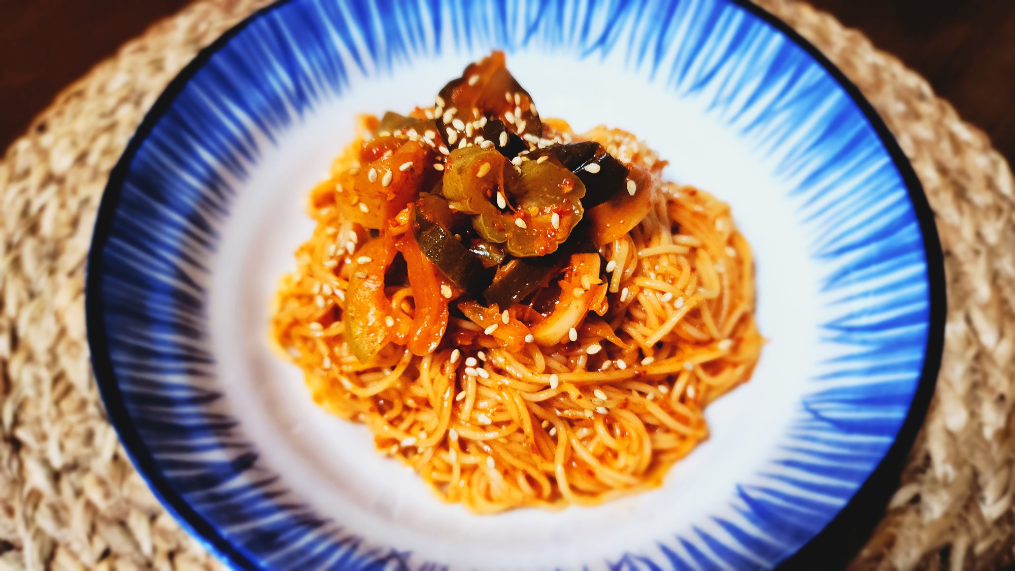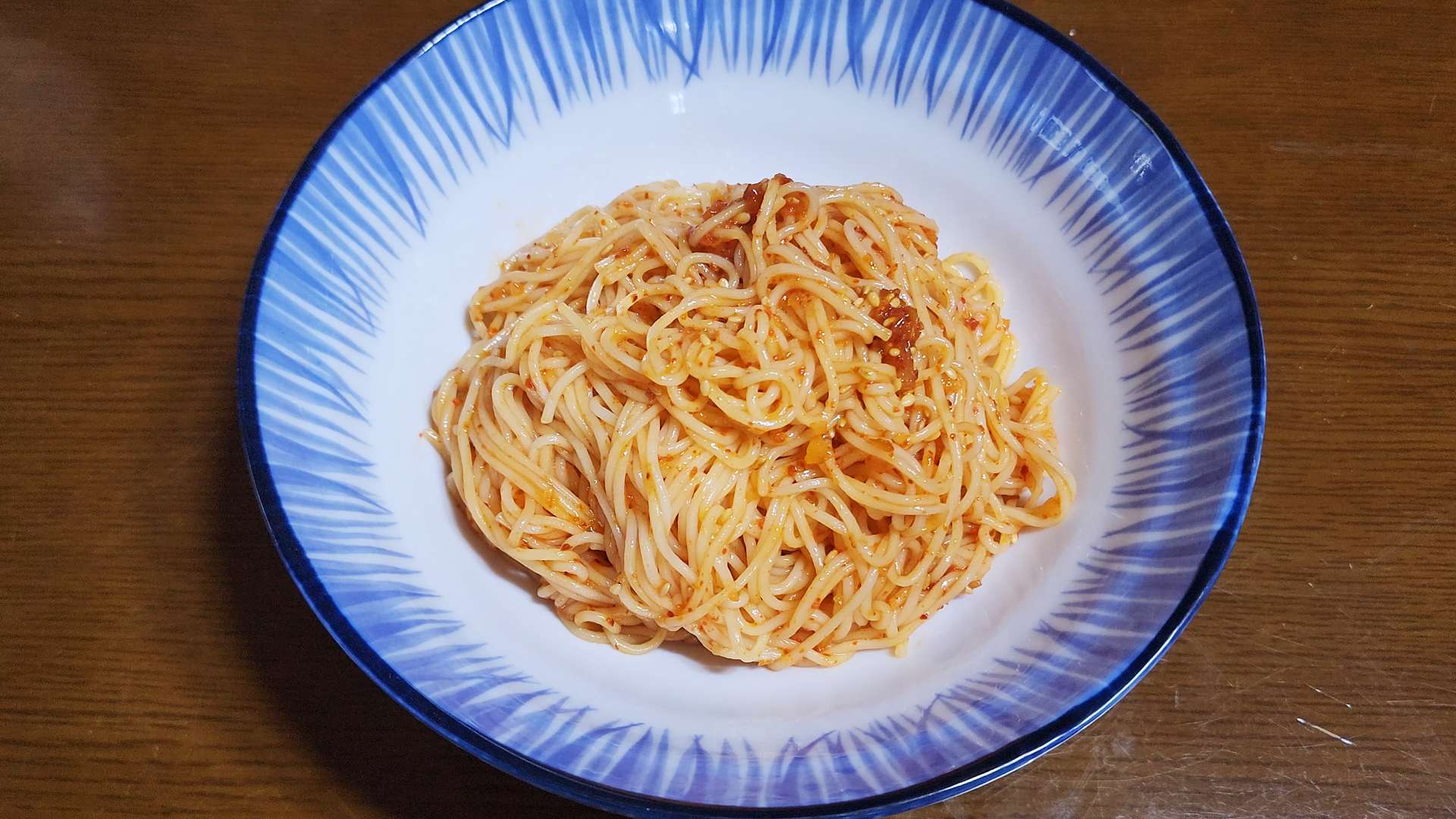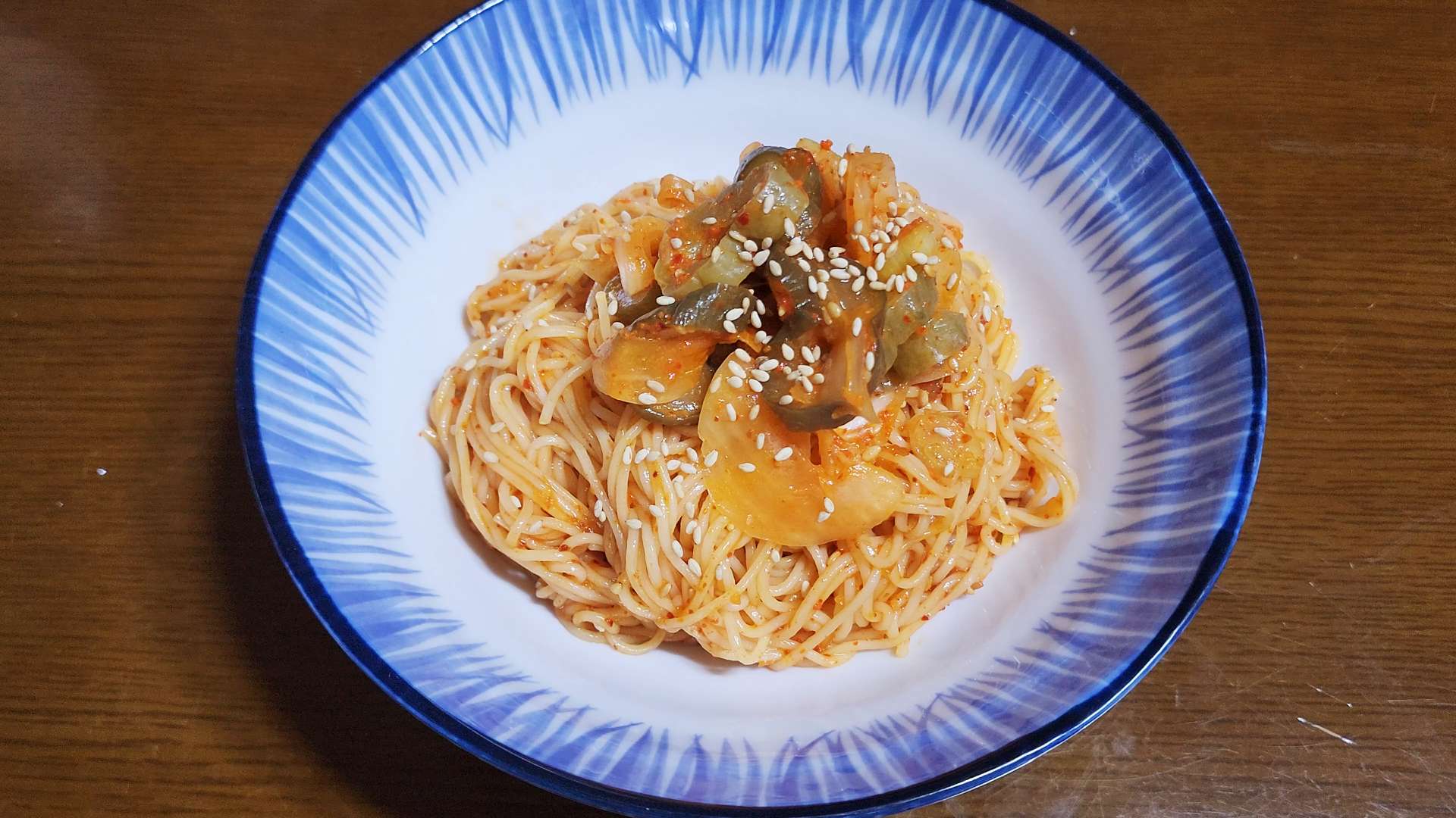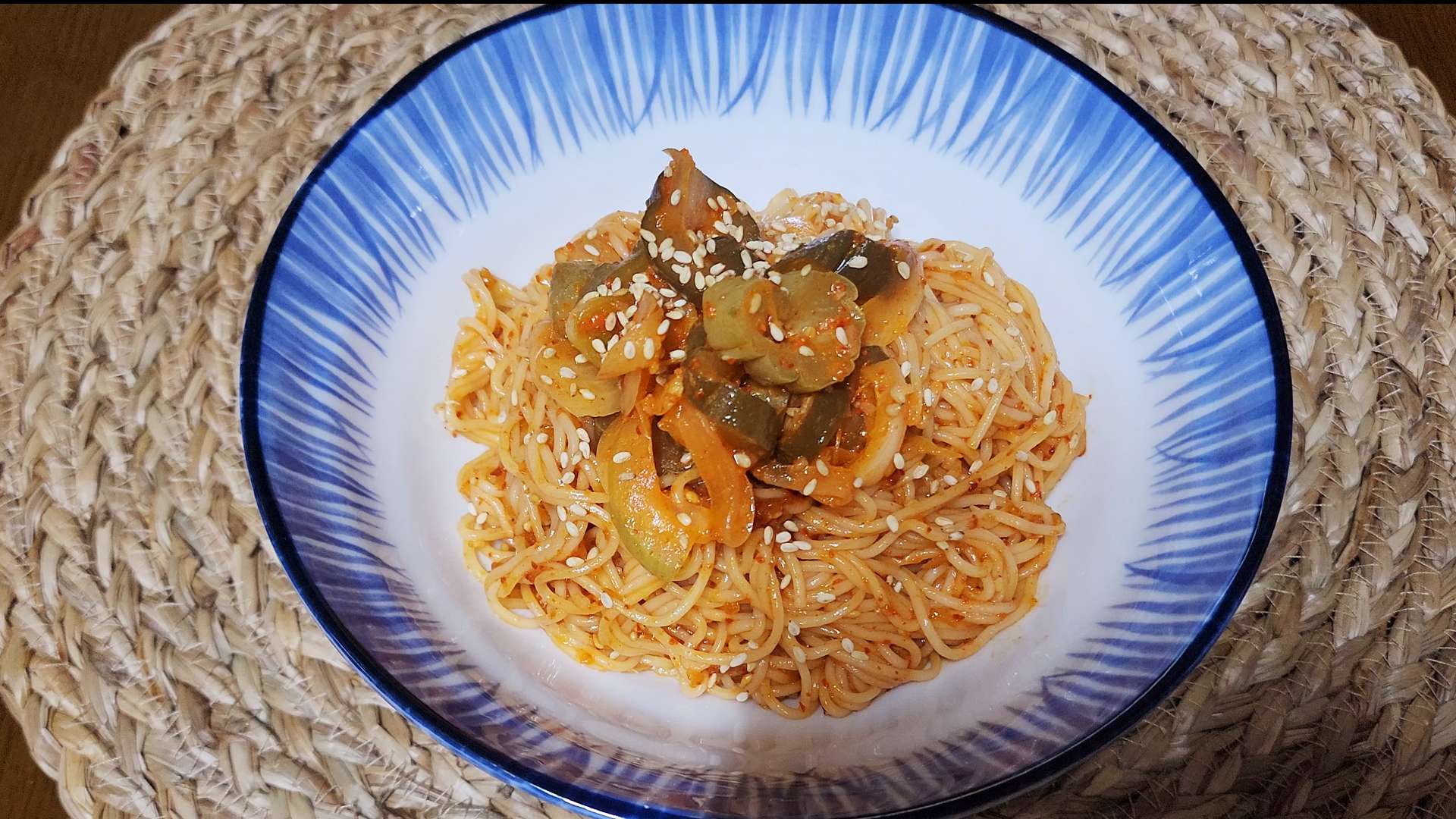 재료: 소면 1인분, 오이지무침 한 줌, 통깨