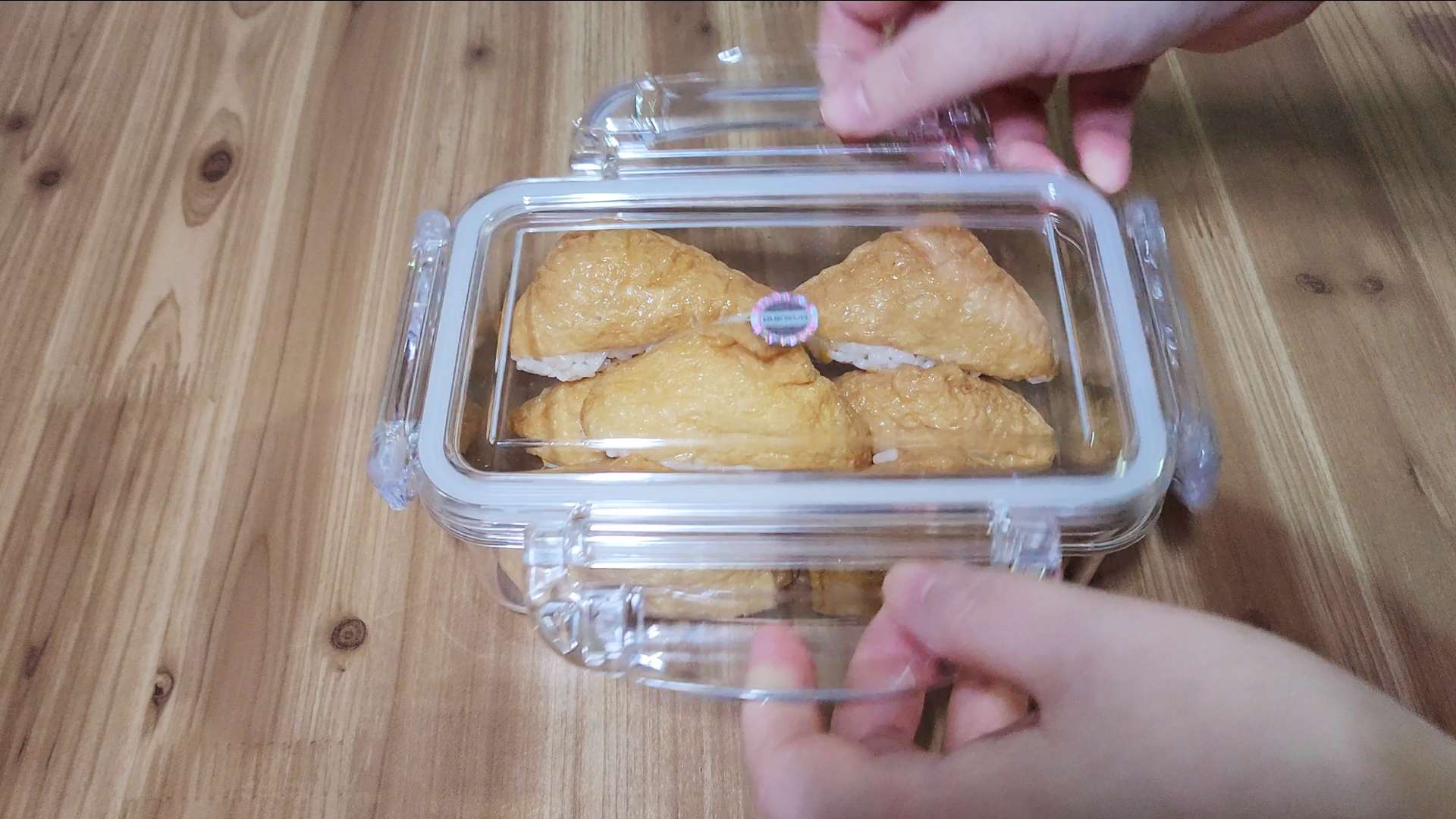엔에프락 직사각형에 유부초밥을 담아 봤어요. 나들이용 도시락용기로 사용해도 좋을것 같아요.