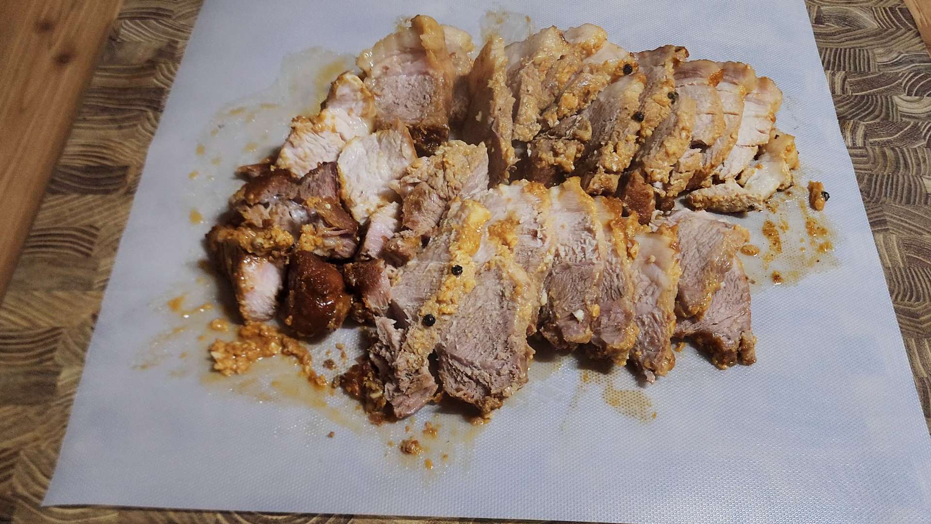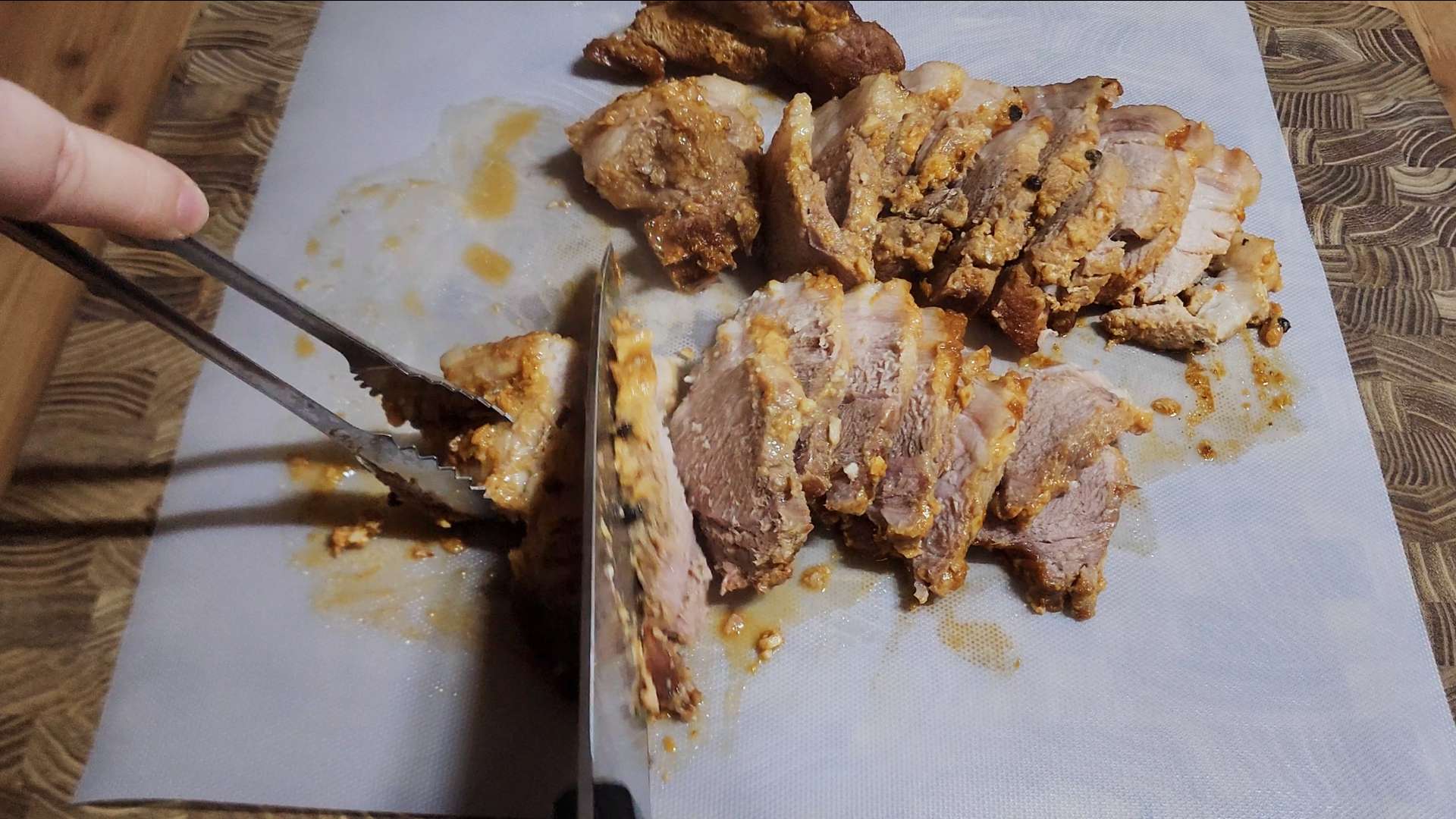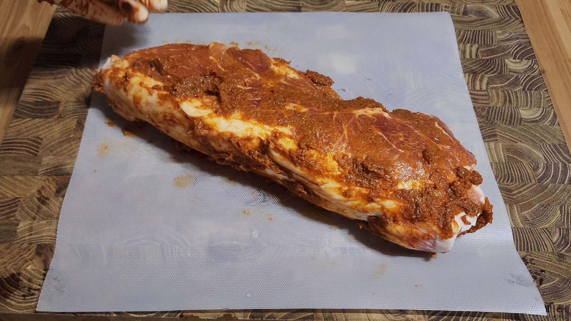 돼지고기 앞다리살에 된장 양념을 앞뒤로 발라줍니다.