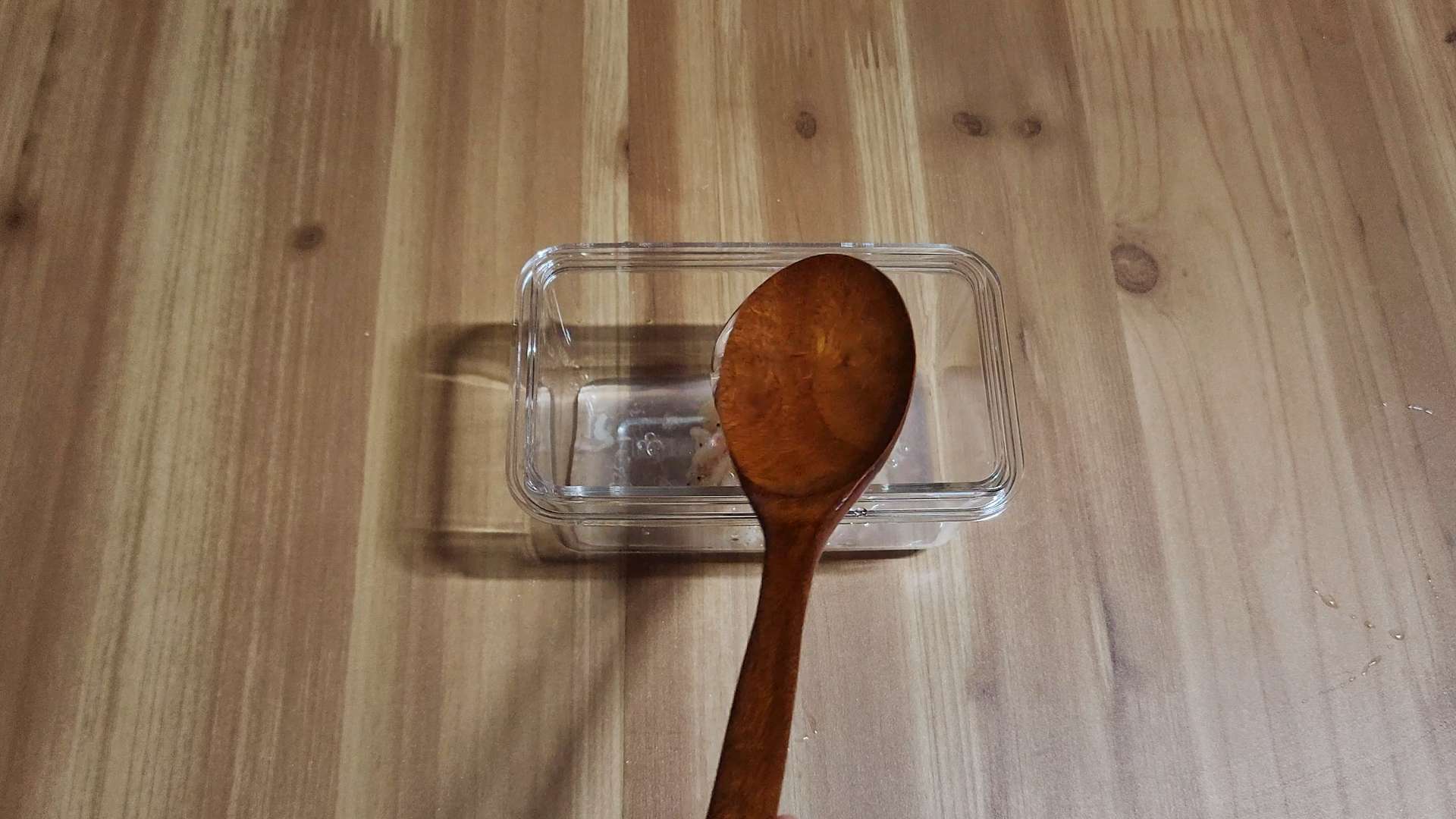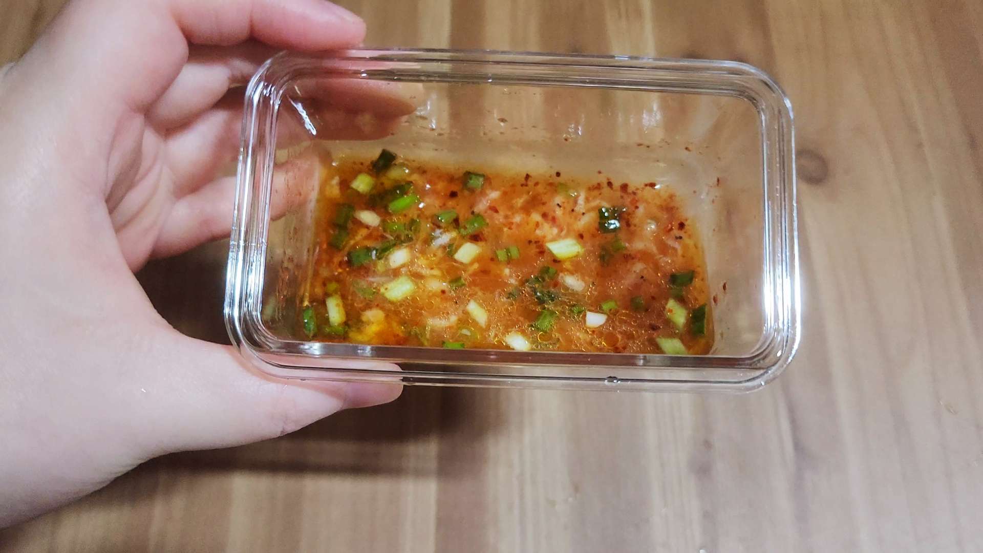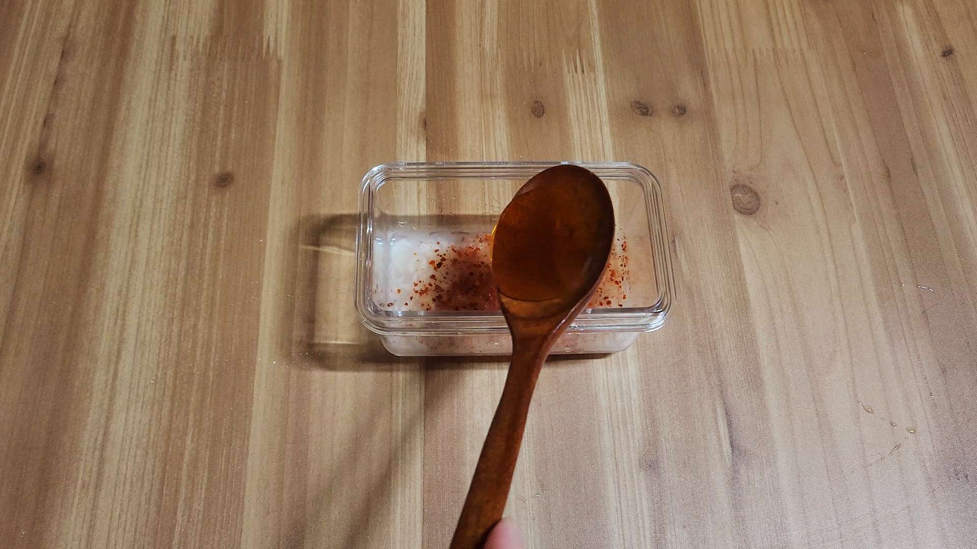 밀폐용기에 새우젓 1T, 물 1T, 고춧가루 0.5T,