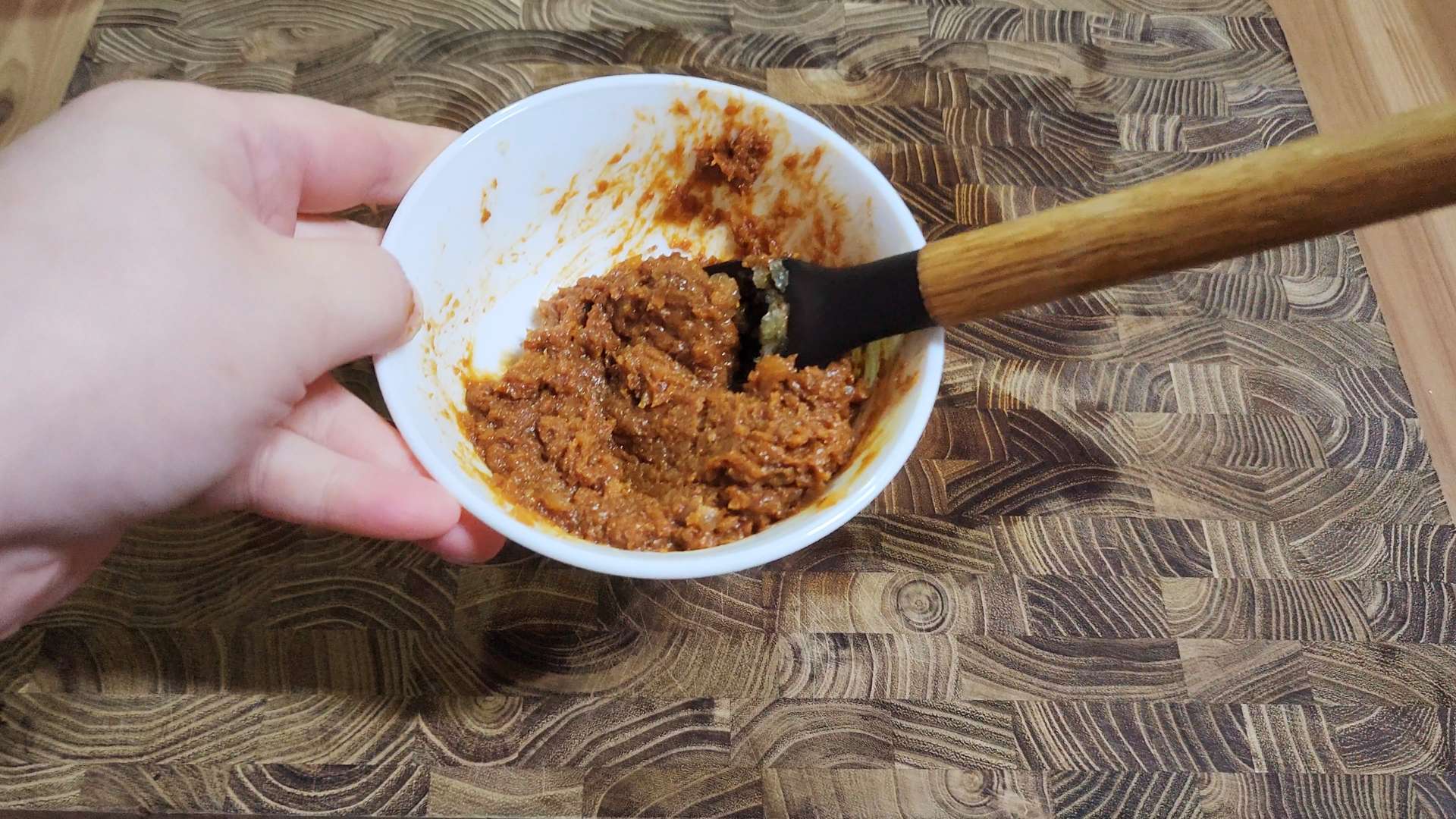 볼에 다진마늘 2T, 된장 3T을 섞어줍니다.