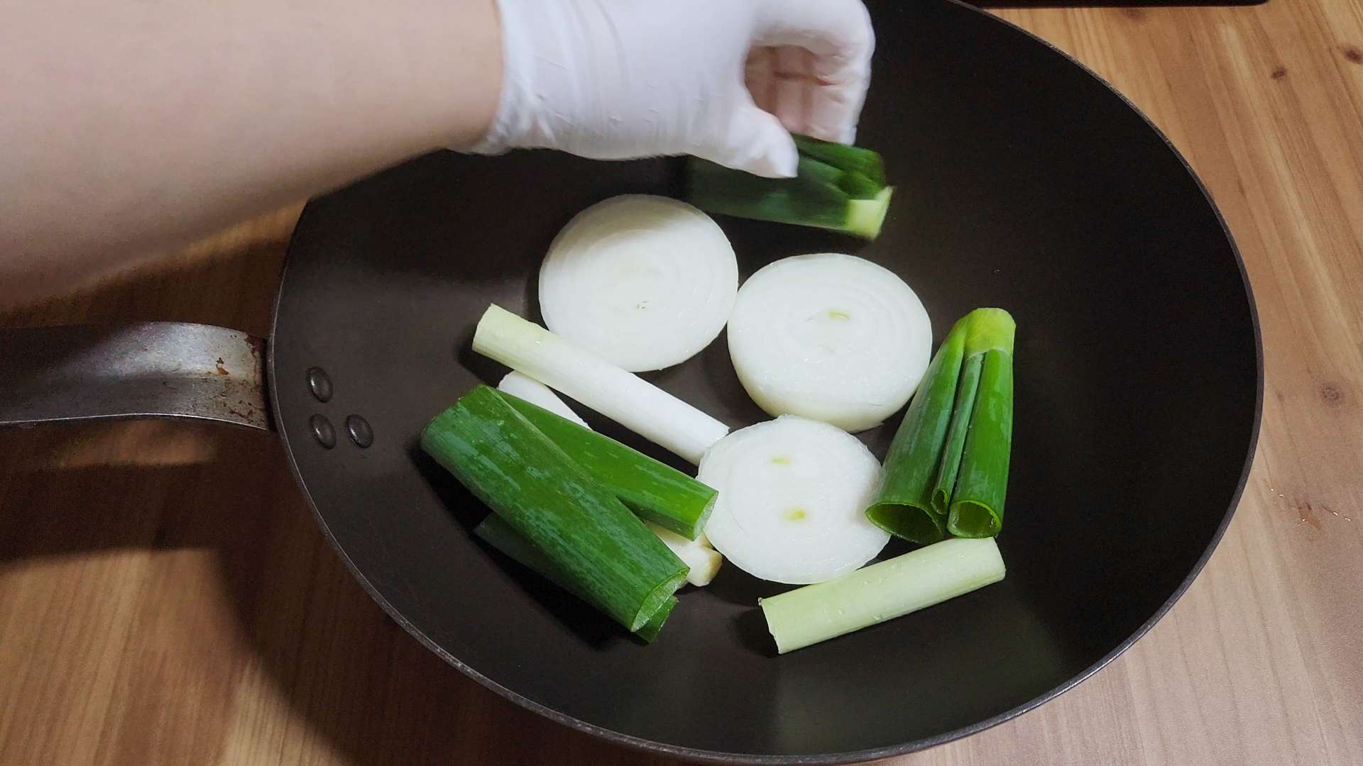 냄비 바닥에 양파, 대파를 넣어줍니다.
