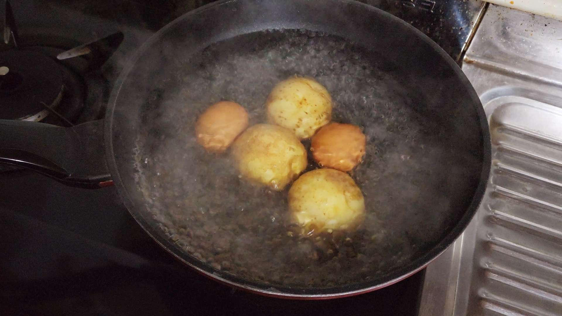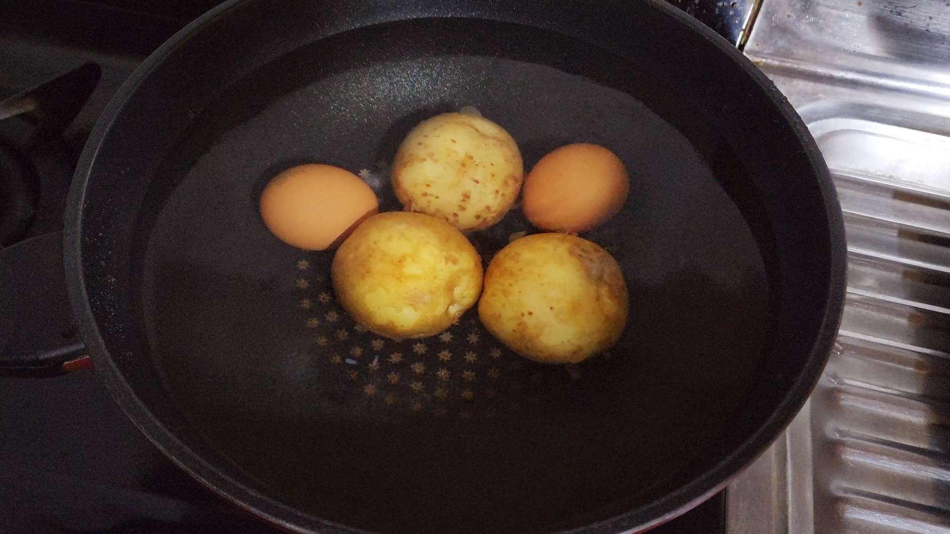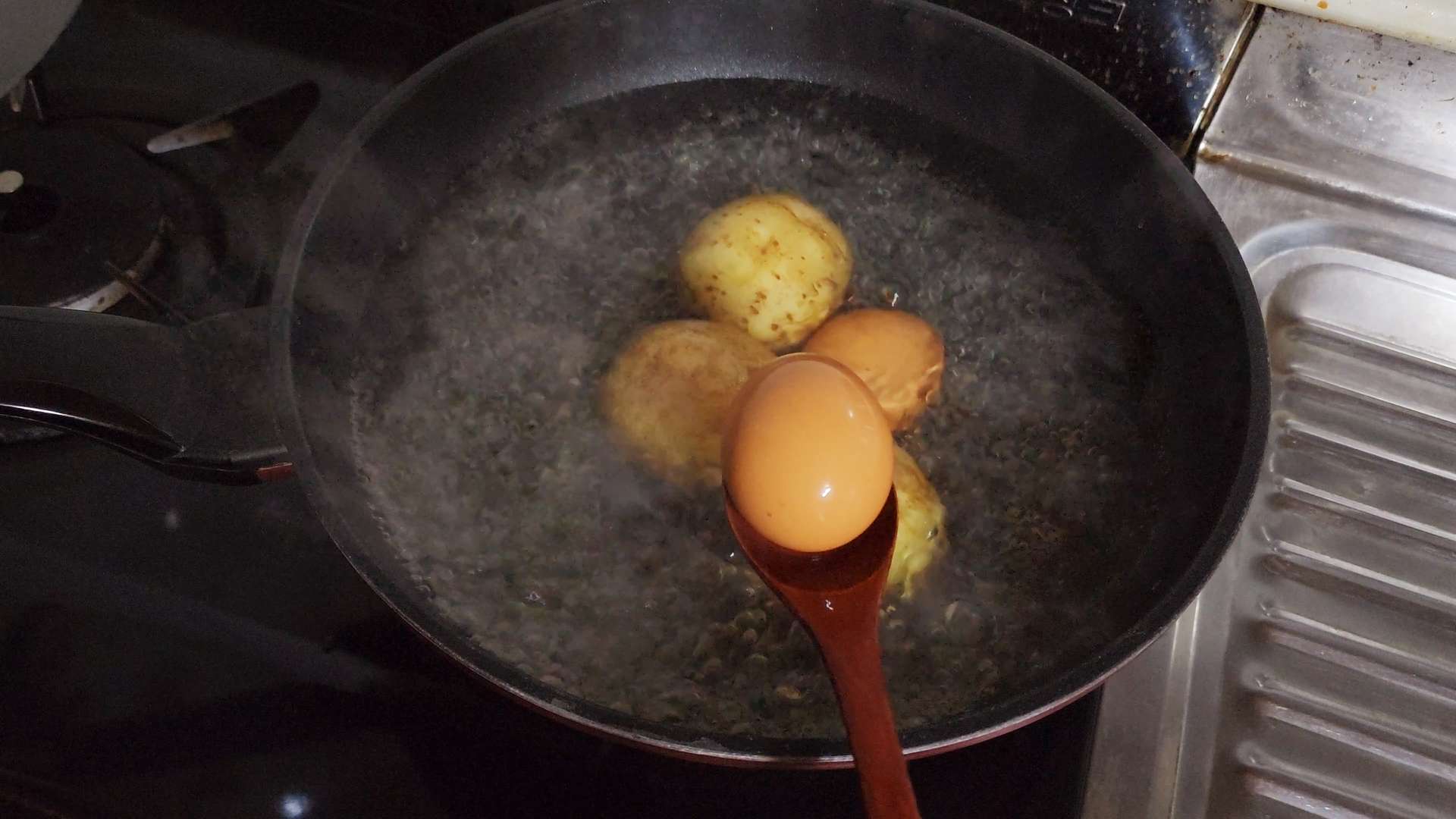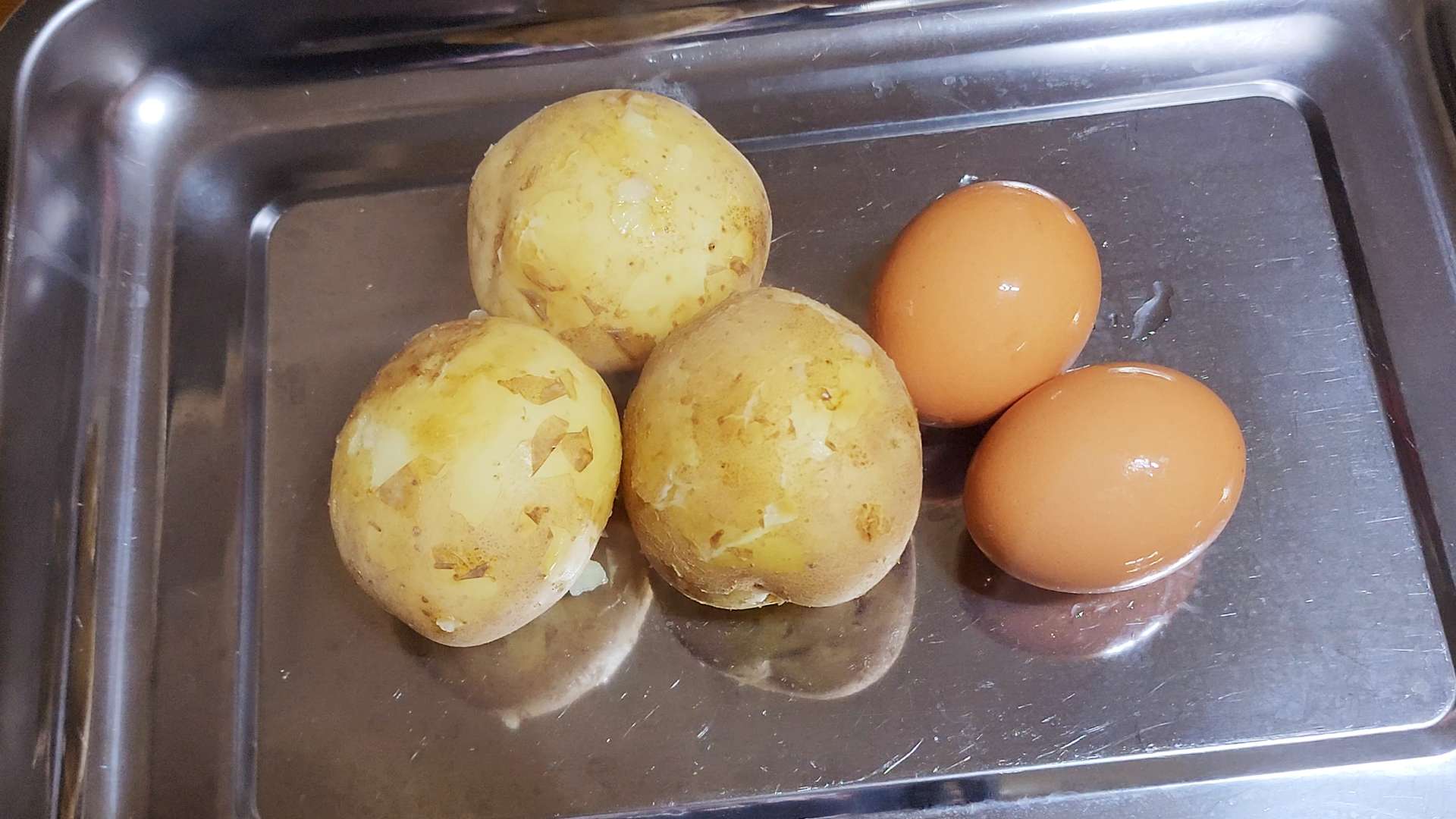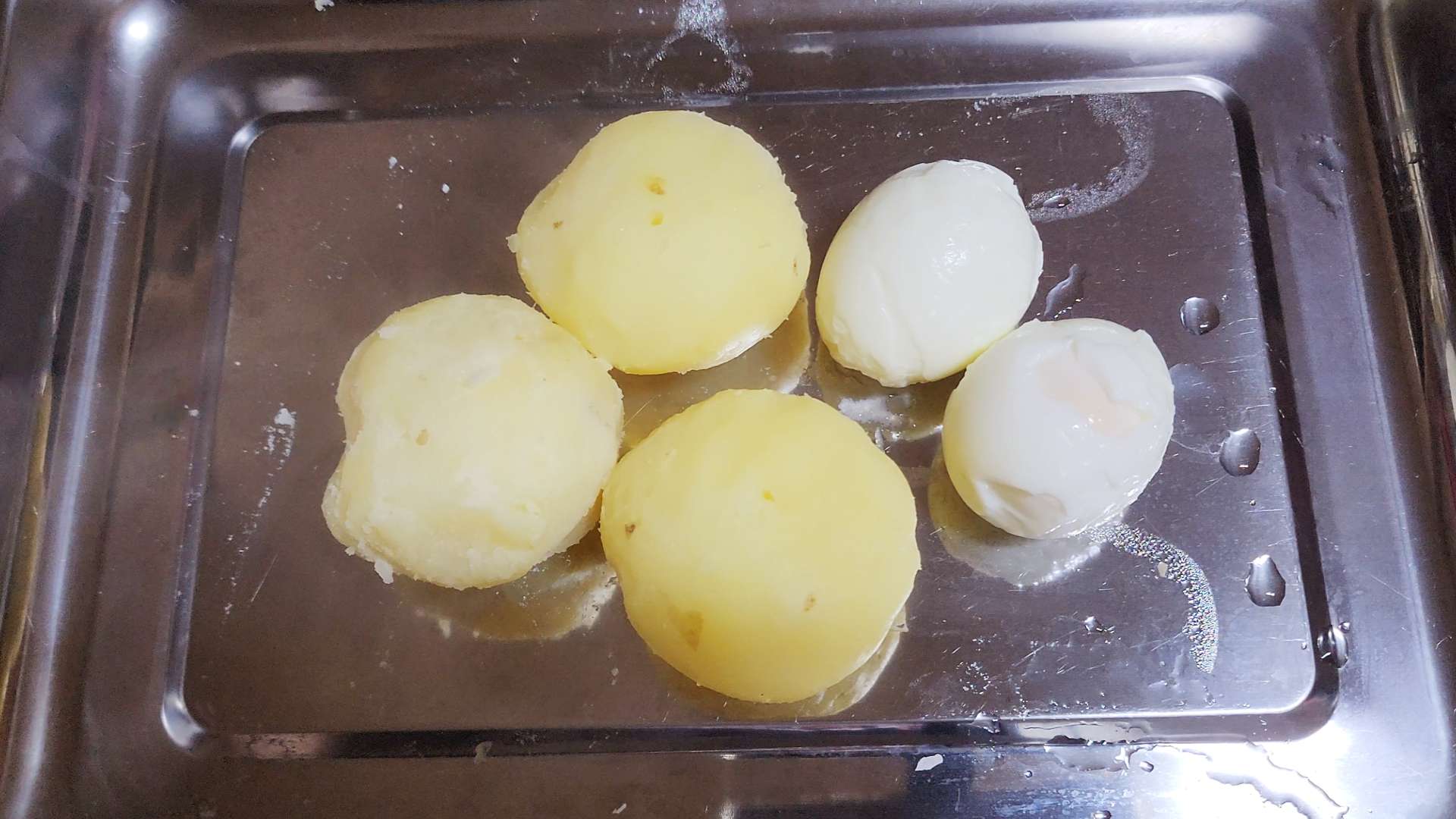 삶은 감자, 달걀은 껍질을 벗겨줍니다.