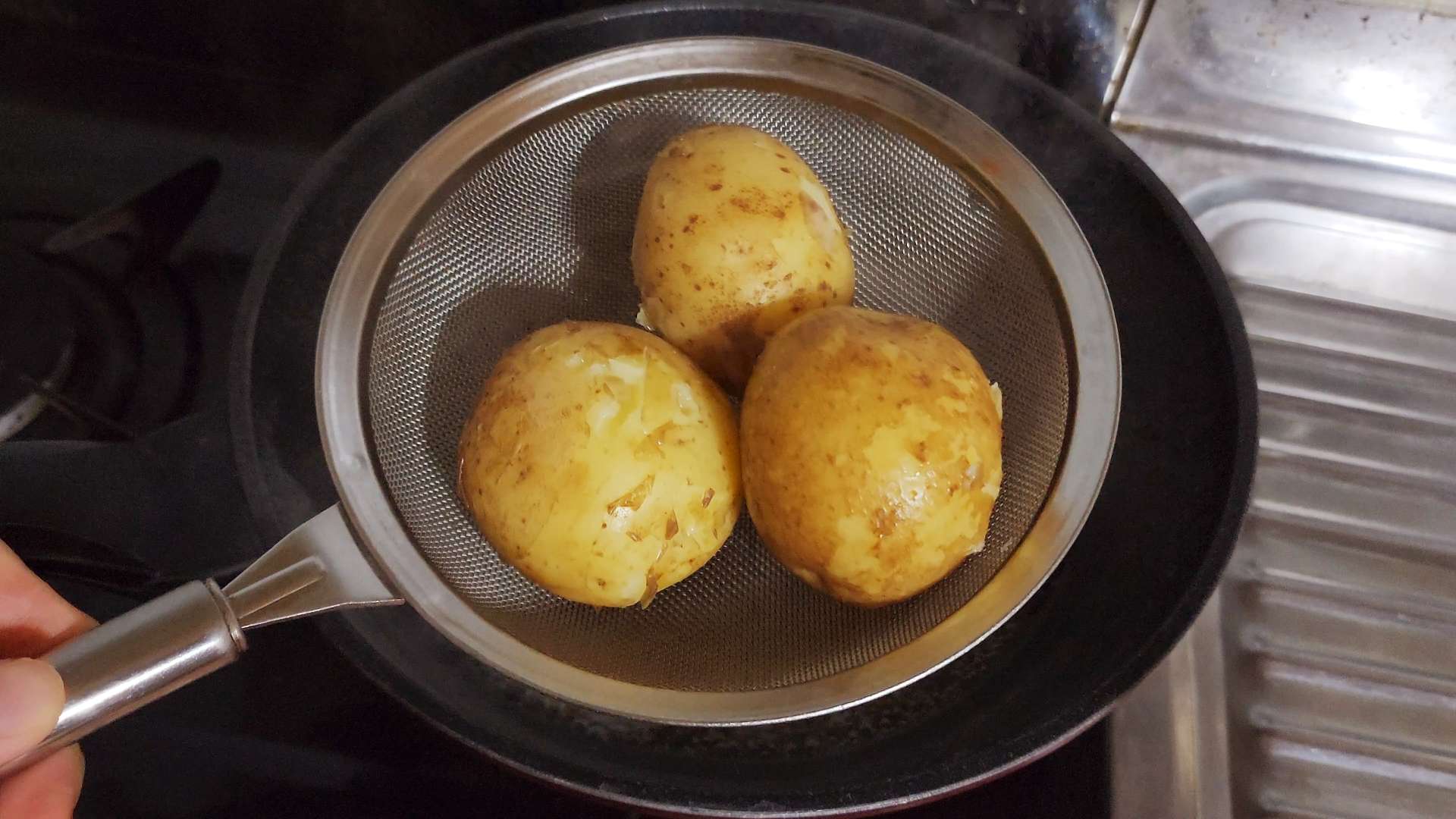 감자는 뚜껑을 덮고 35분 정도 삶아 건져줍니다.