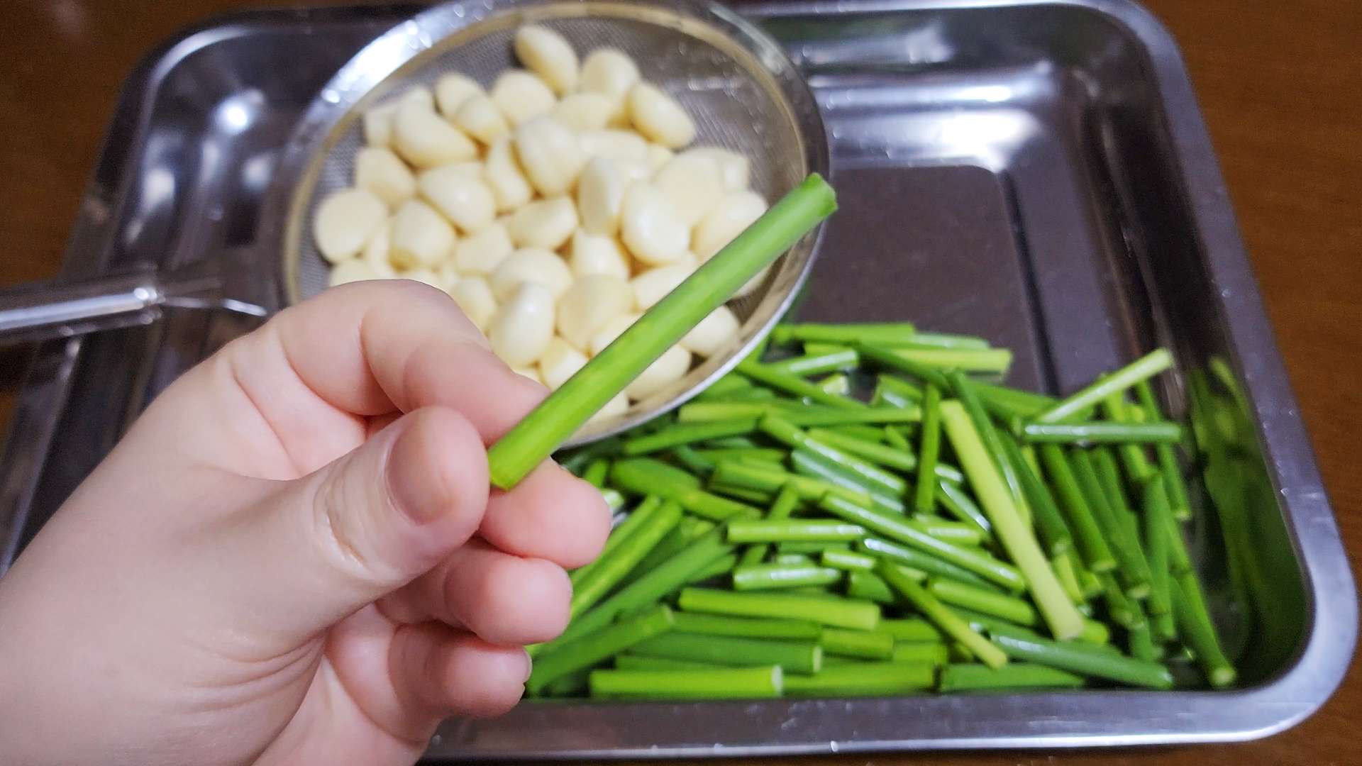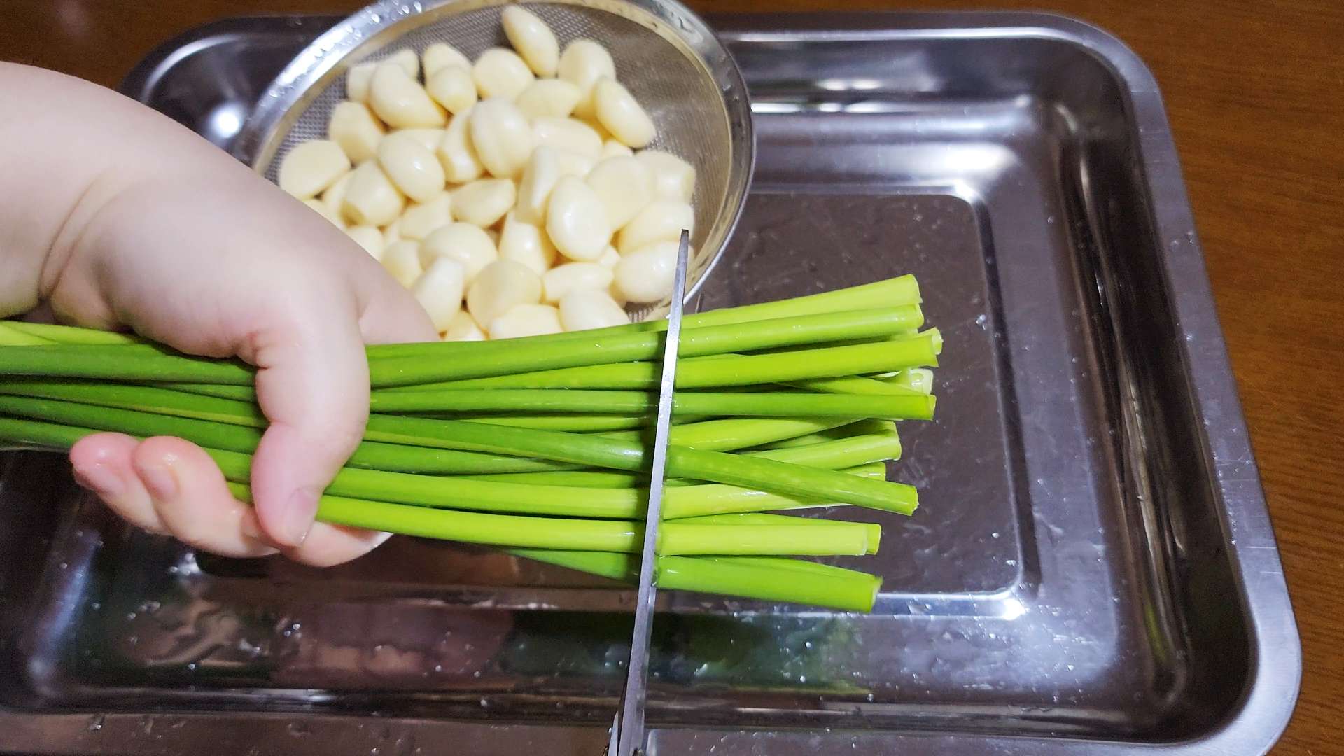 마늘쫑은 깨끗이 씻어 먹기 좋은 크기로 잘라줍니다.