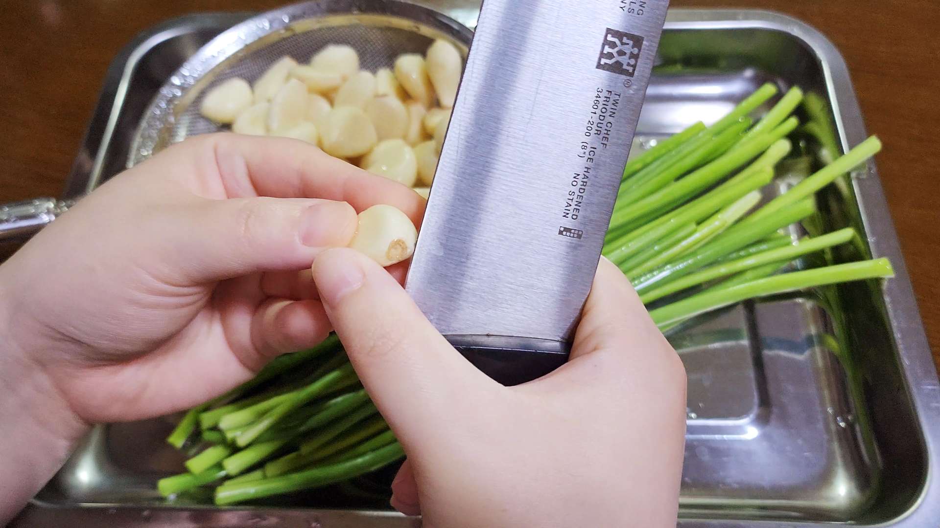마늘은 꼭지를 자르고 깨끗이 씻어 물기를 제거해줍니다.