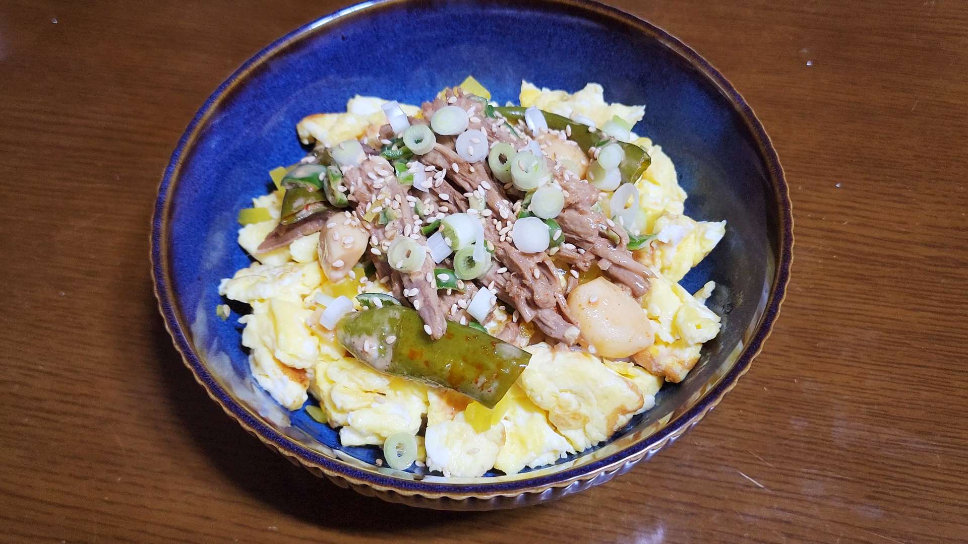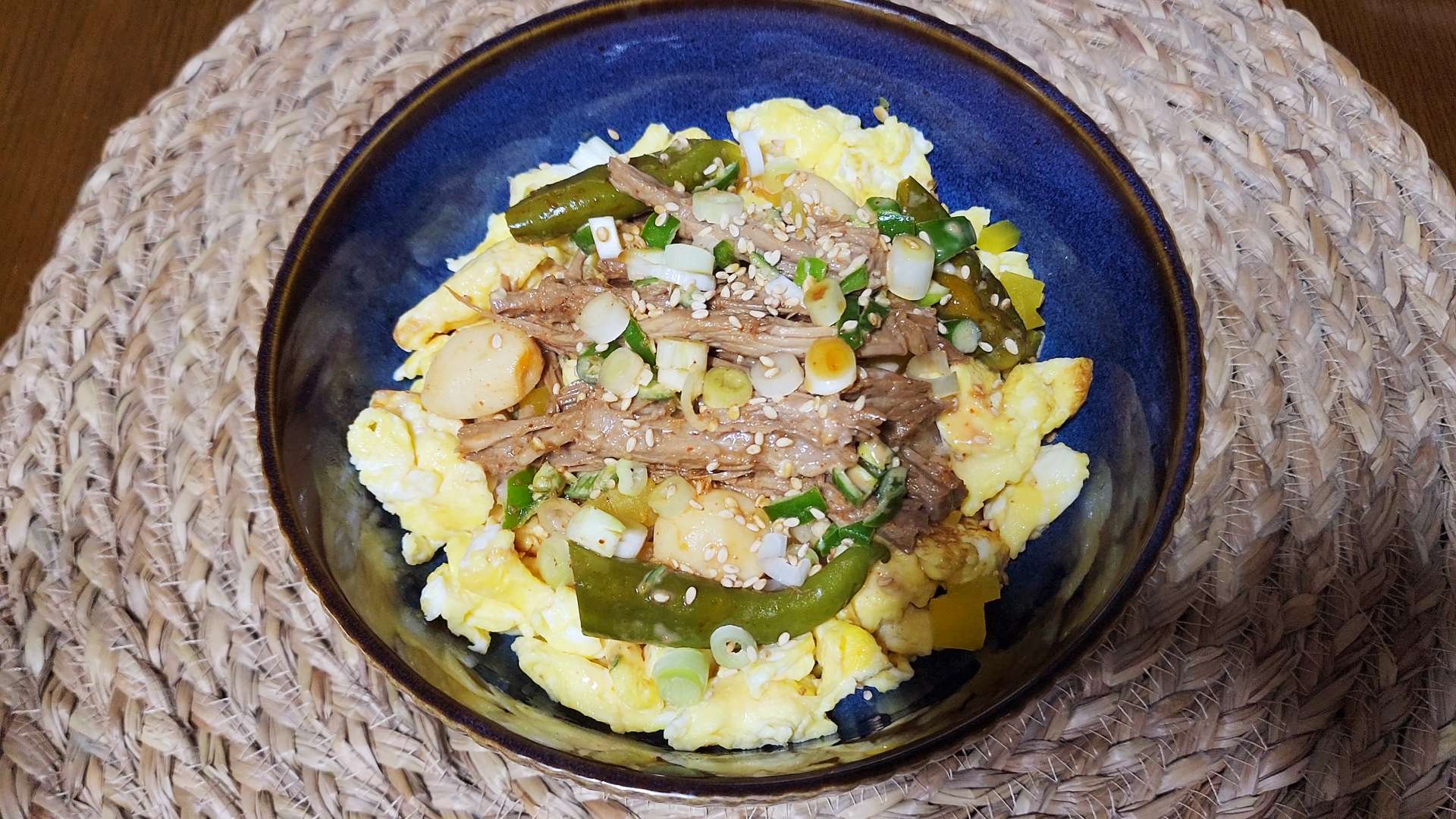 재료: 밥 1공기, 장조림, 단무지, 달걀 2개,