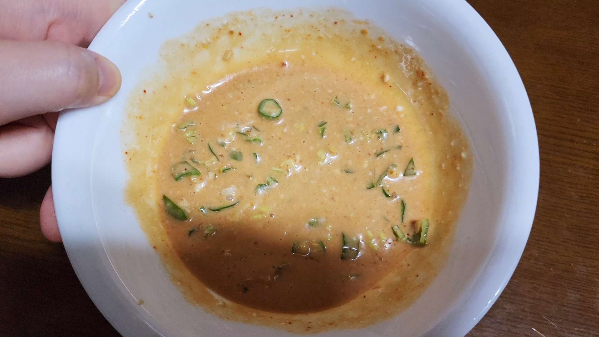 불닭소스 2/3t, 설탕 1/2t, 청양고추 1개, 대파, 통깨