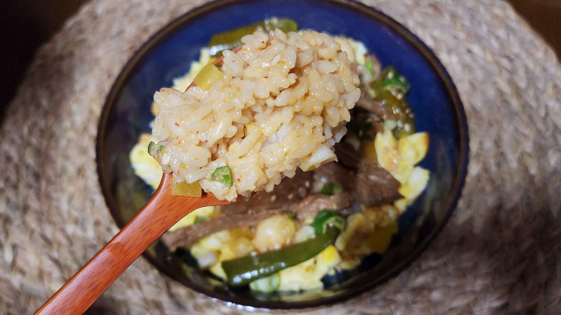 매콤짭조름 장조림에 고소한 마요소스를 넣고 밥에