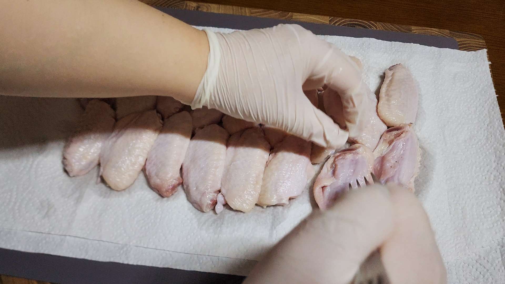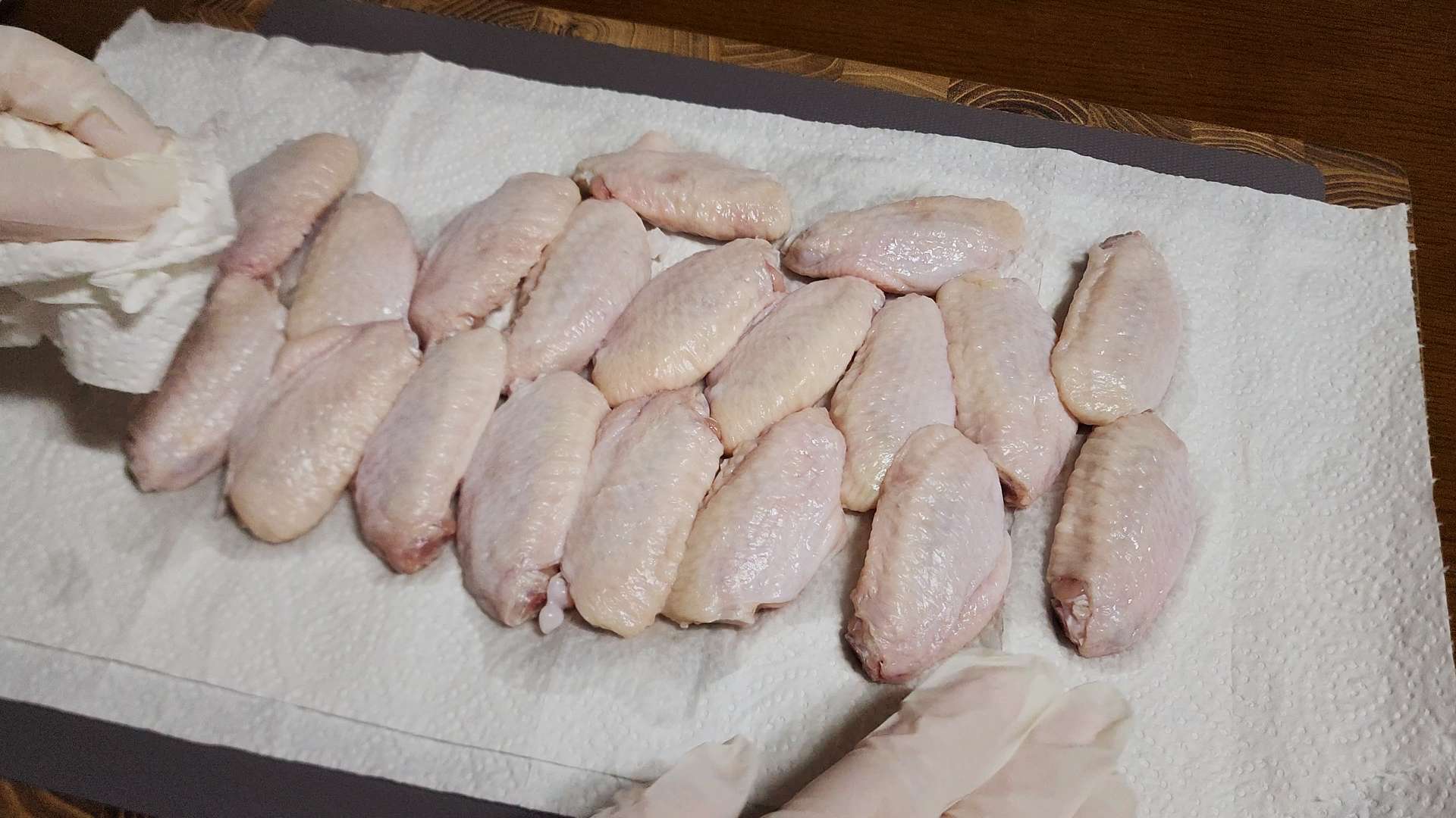 닭날개는 한번 씻은 후 키친타올로 물기를 제거해줍니다.