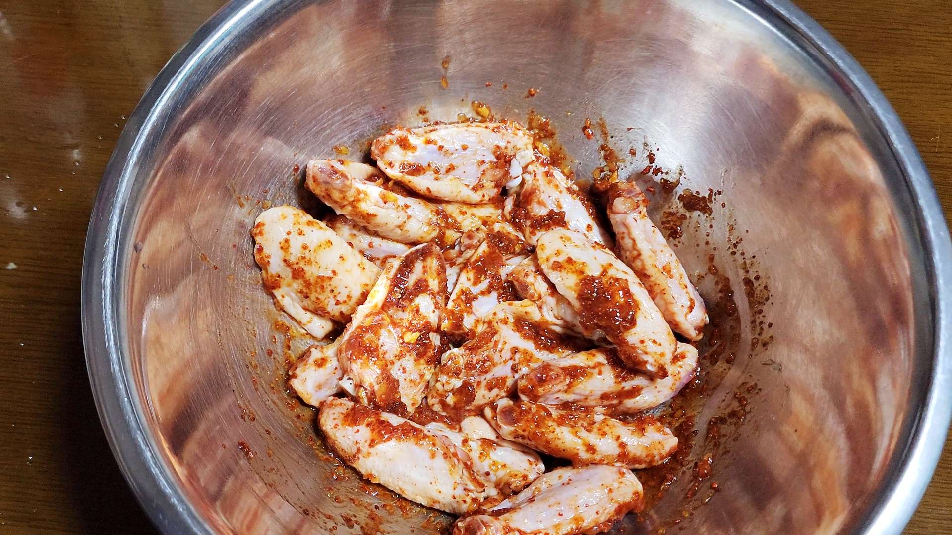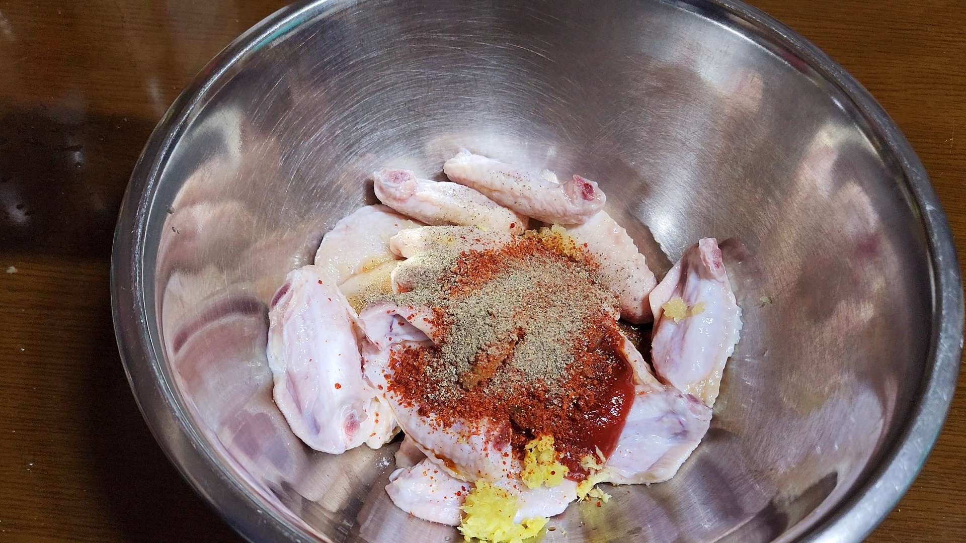 재료: 닭날개(아랫날개) 500g, 다진 마늘 1T,