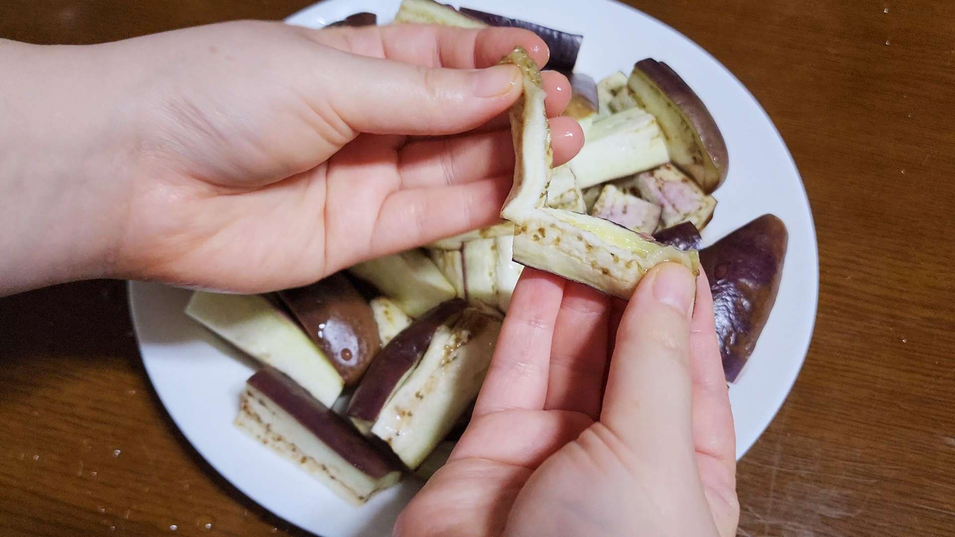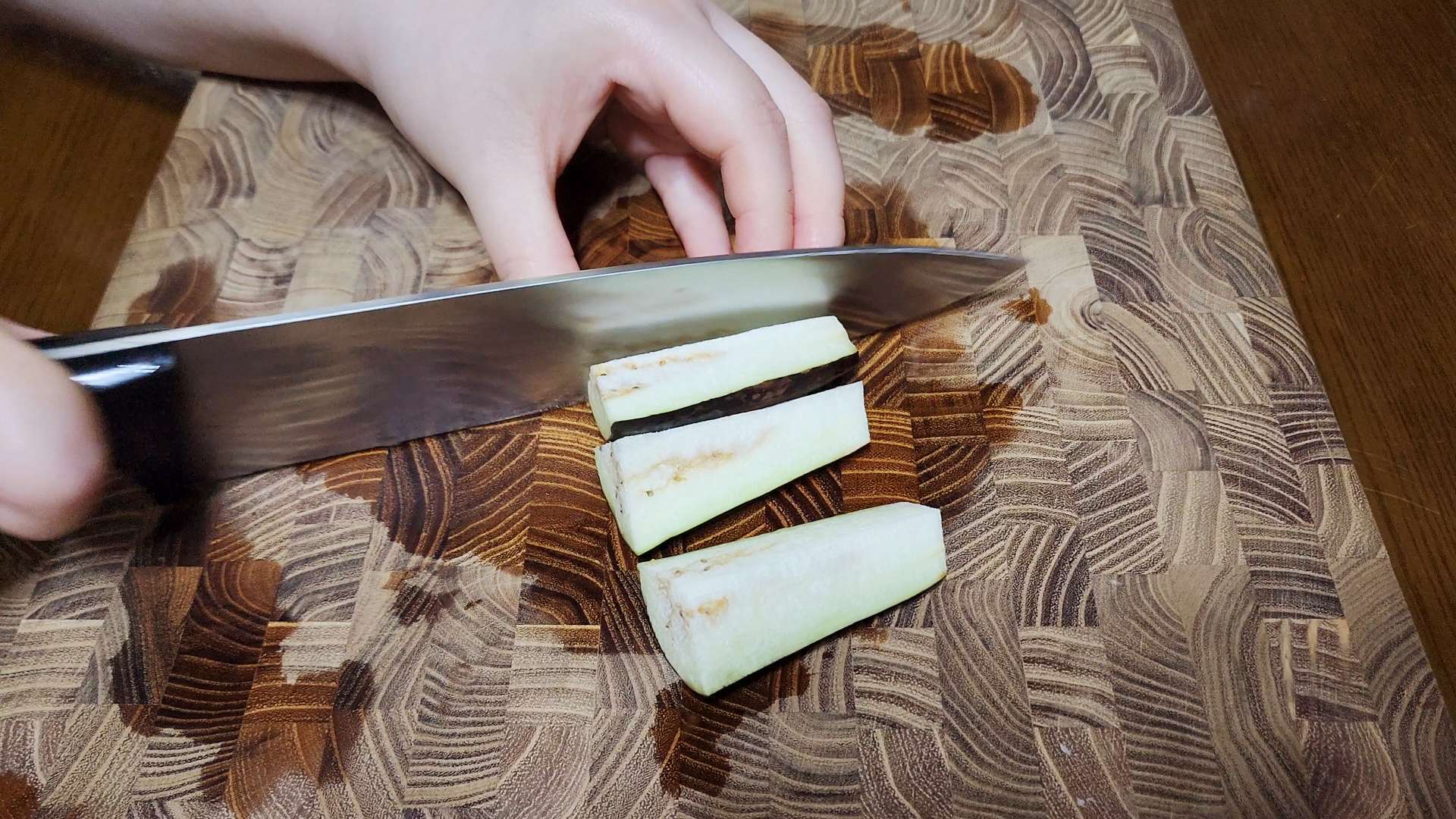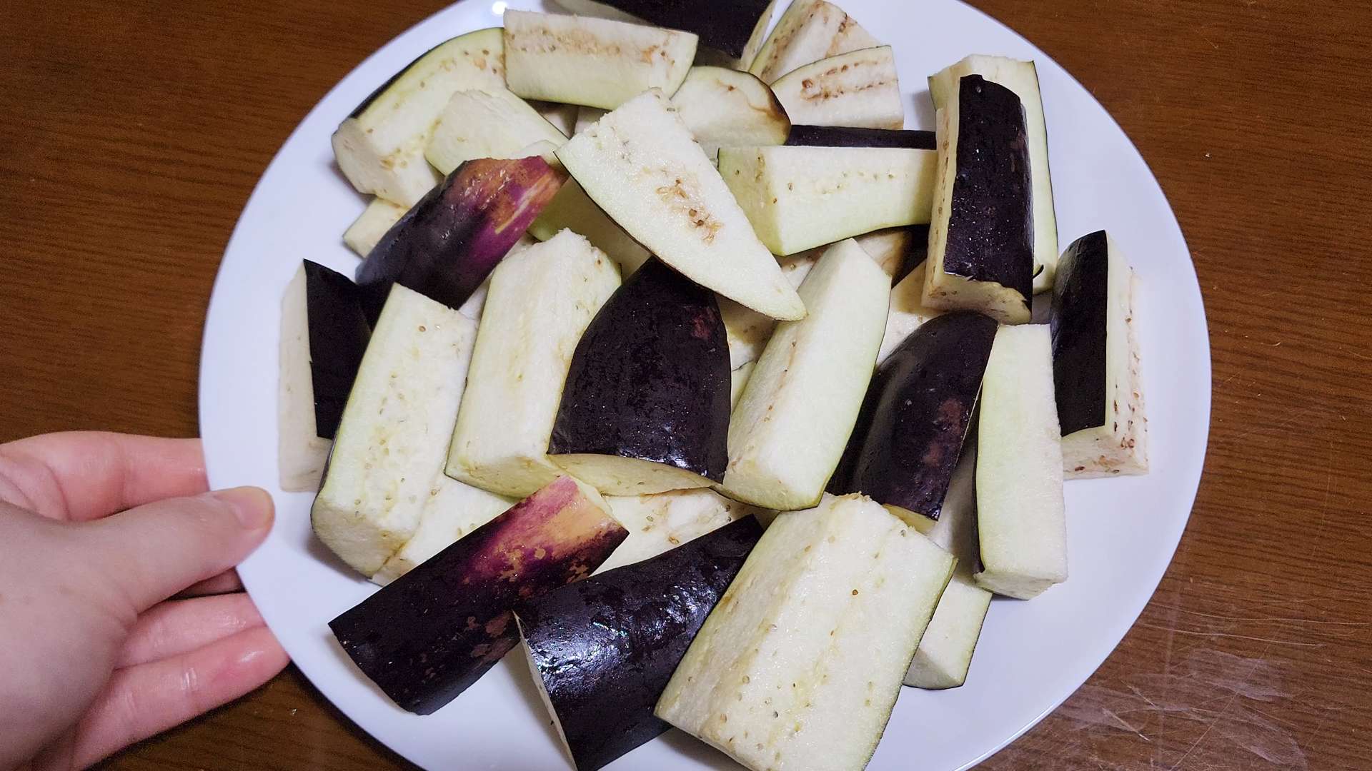 가지는 꼭지를 자르고 깨끗이 씻어줍니다.