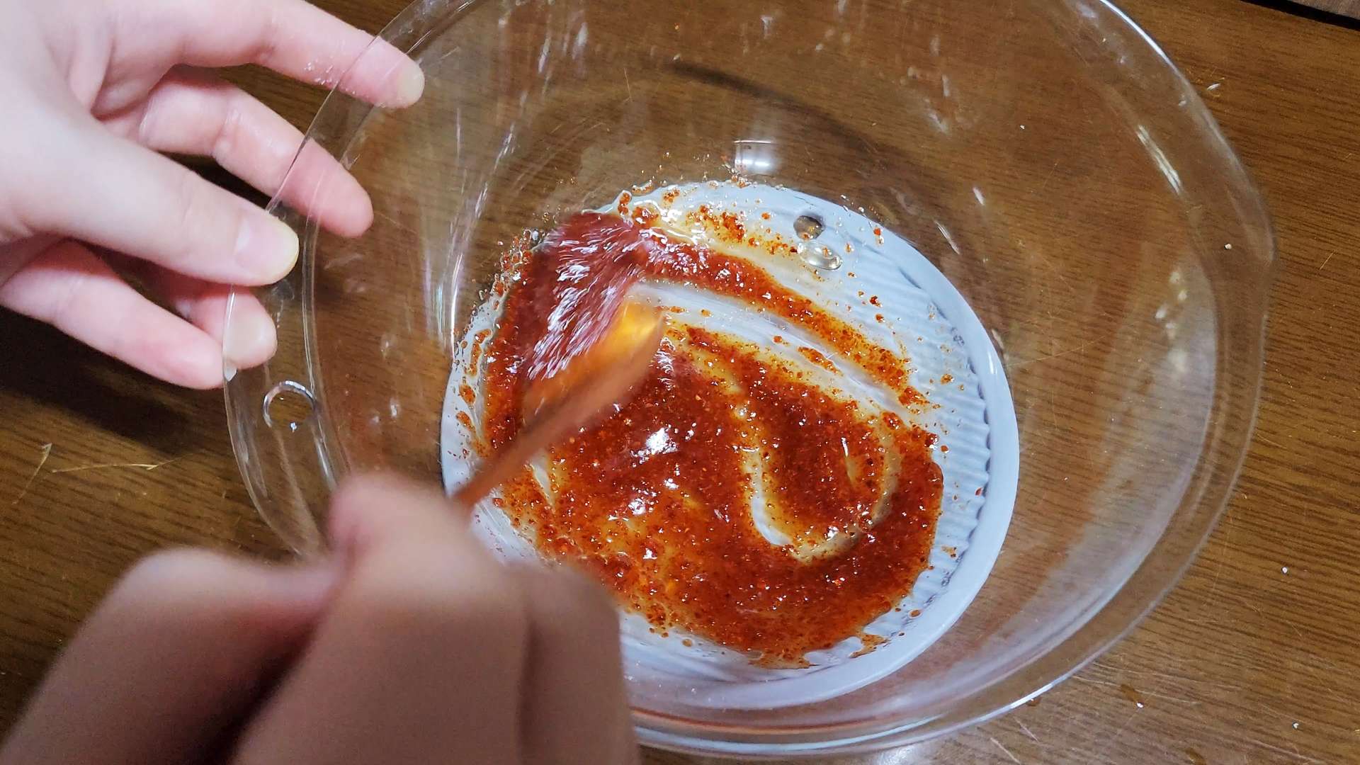 볼에 고춧가루 1T, 식초 1T, 올리고당 1T, 참기름 1T, 소금 2꼬집을 넣고 섞어줍니다.