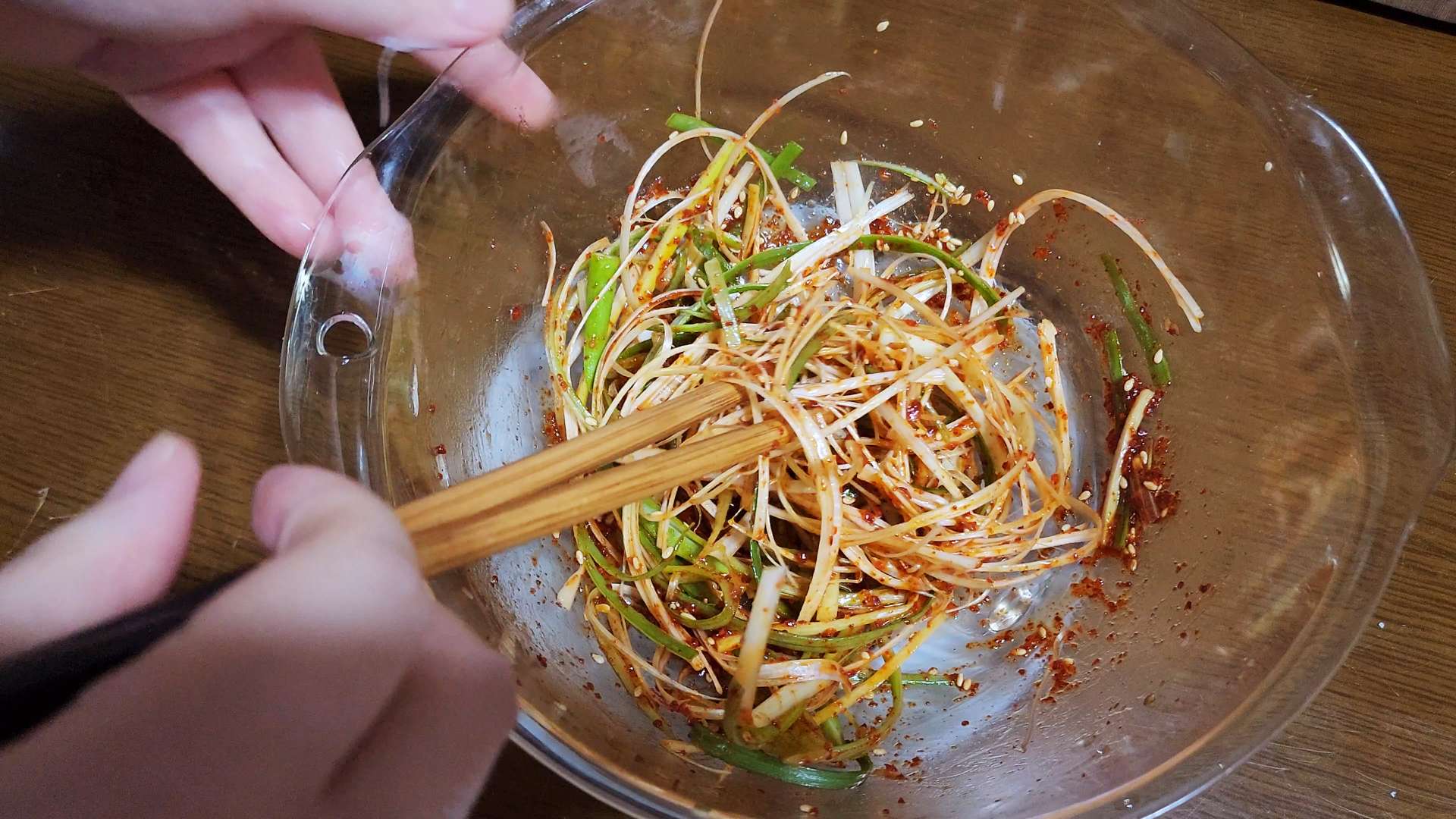파무침: 채썬 대파 200g, 고춧가루 1T, 식초 1T,