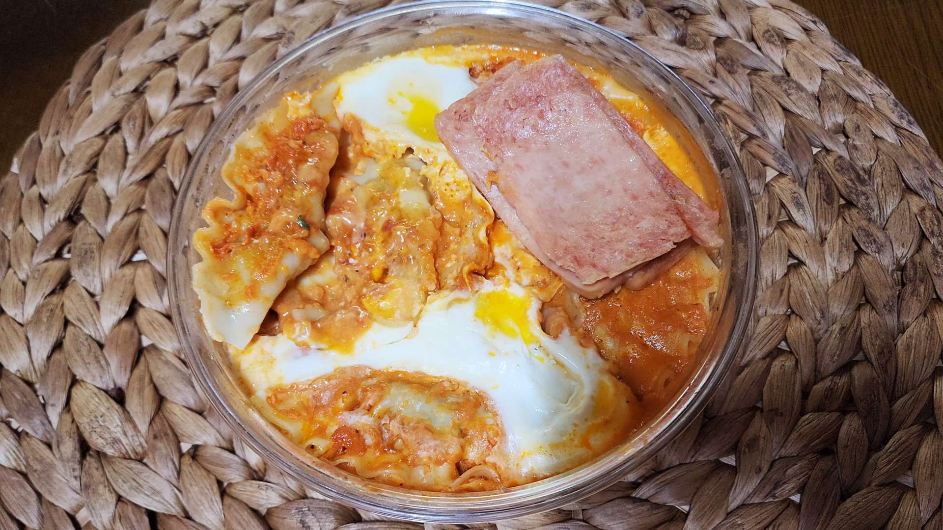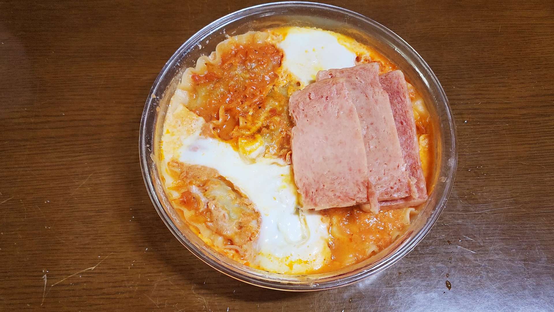 * 베이컨 대신 얇게 썬 스팸 3조각을 사용했어요.