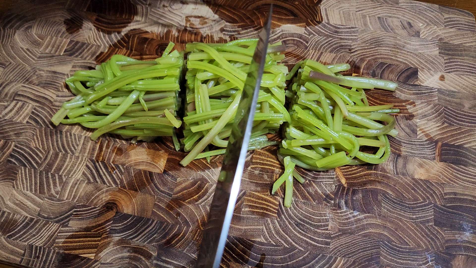 고구마줄기는 4cm 길이로 잘라줍니다.