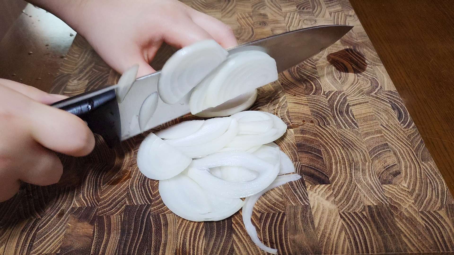재료: 고구마줄기 250g, 양파 1/2개, 대파 1/2대,