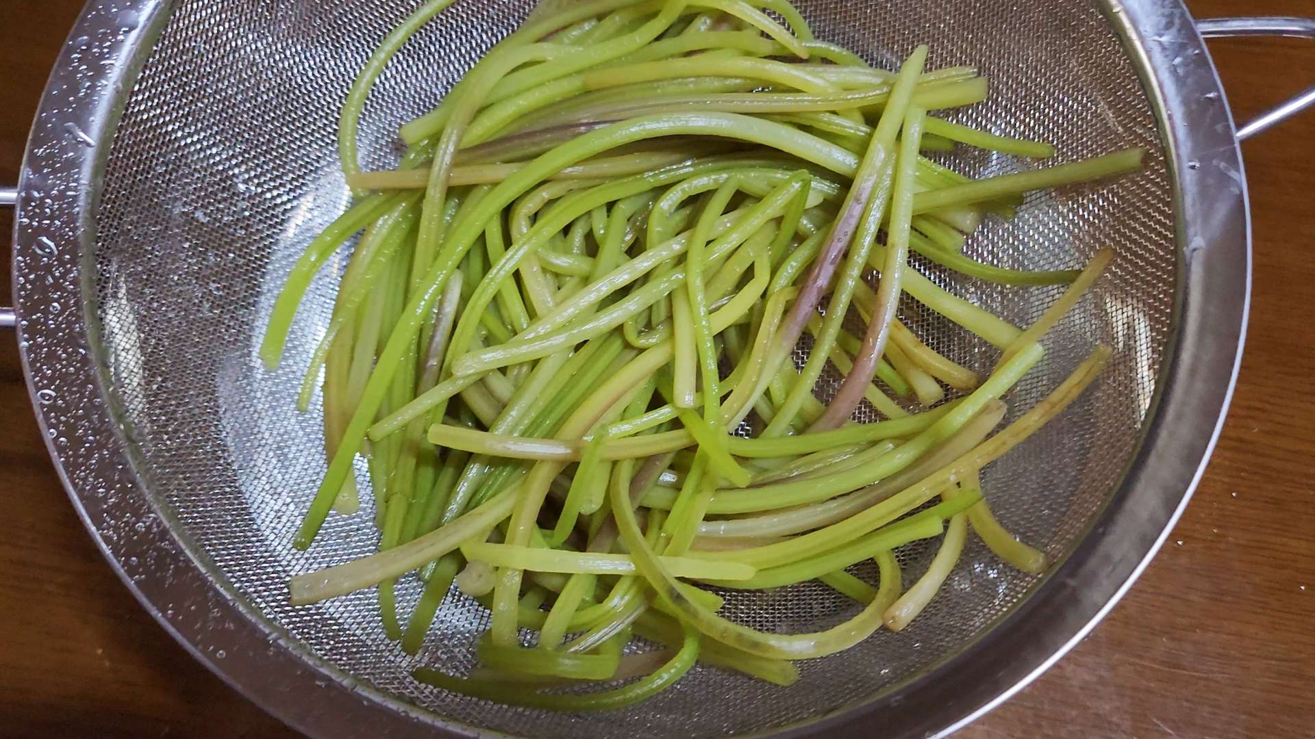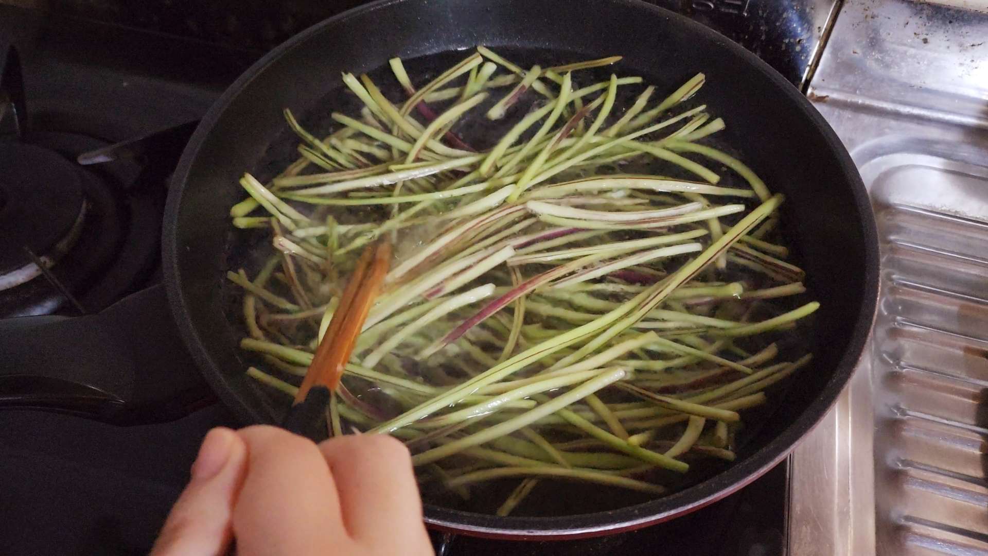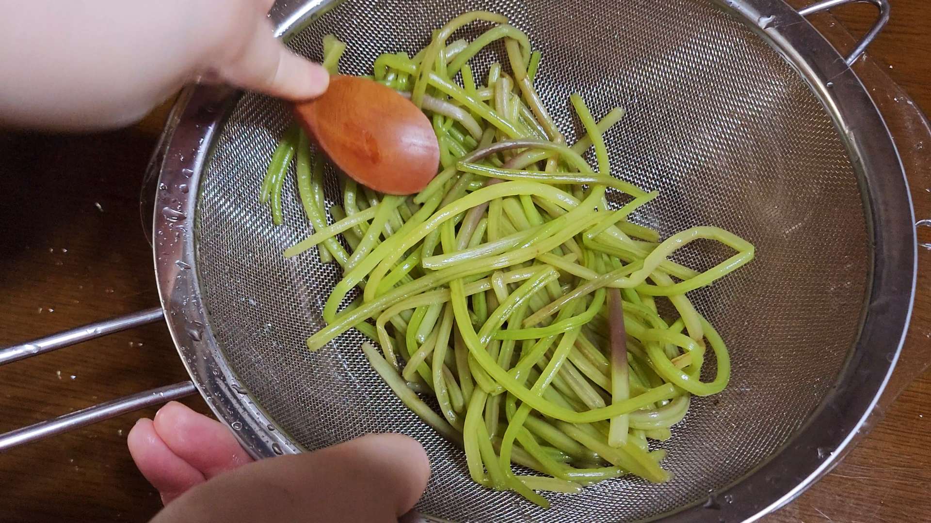 고구마줄기를 넣고 5분간 삶아 건져줍니다.