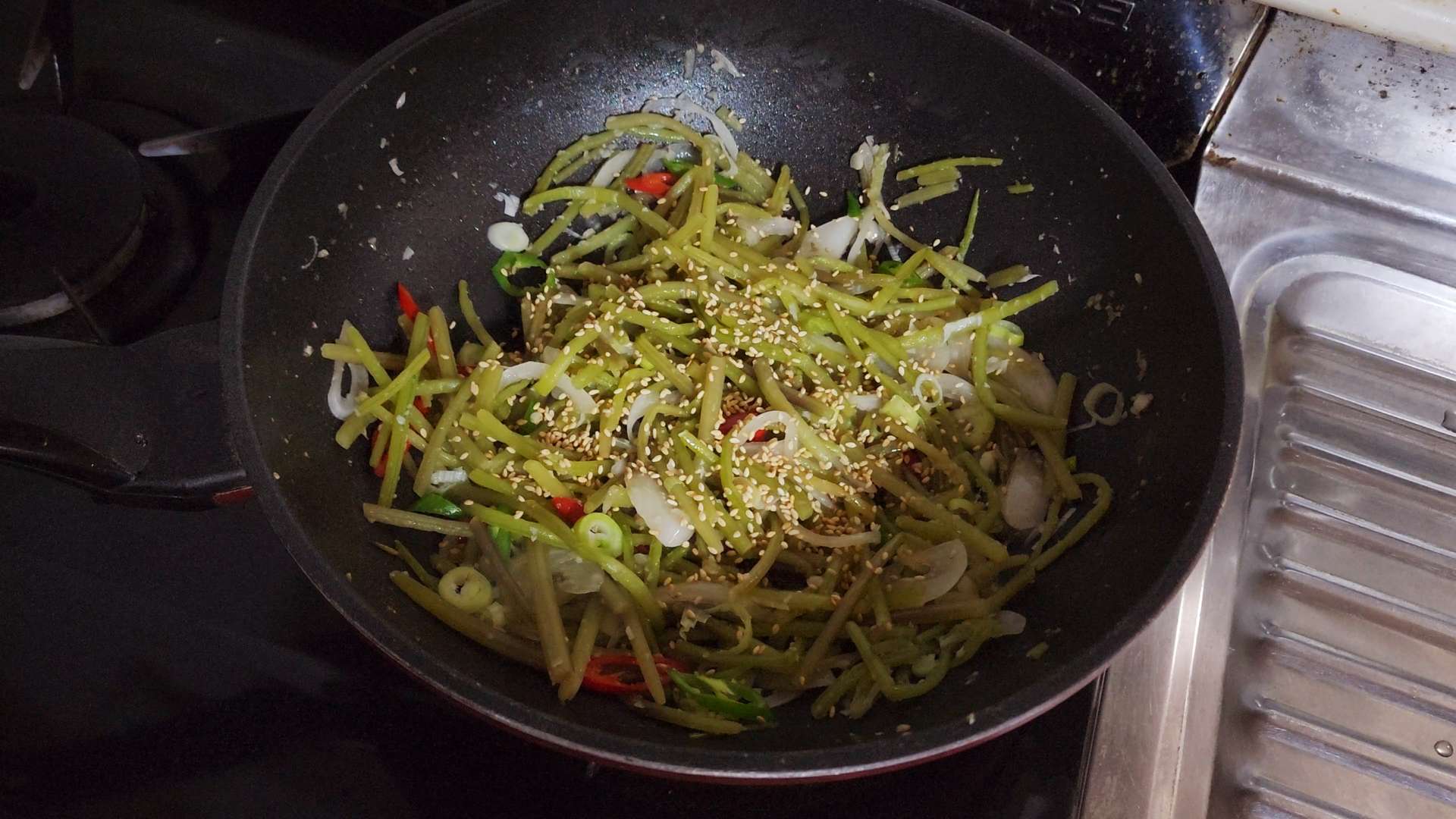참기름, 통깨를 넣고 불을 끄고 섞어줍니다.