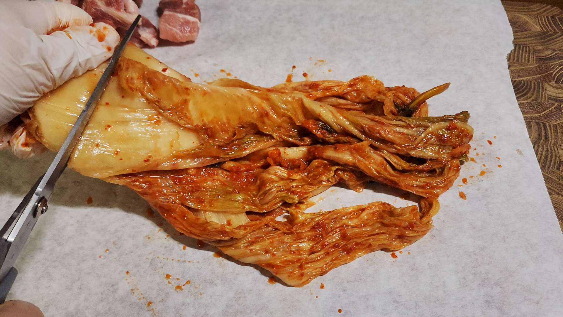 배추김치는 먹기 좋은 크기로 잘라줍니다.