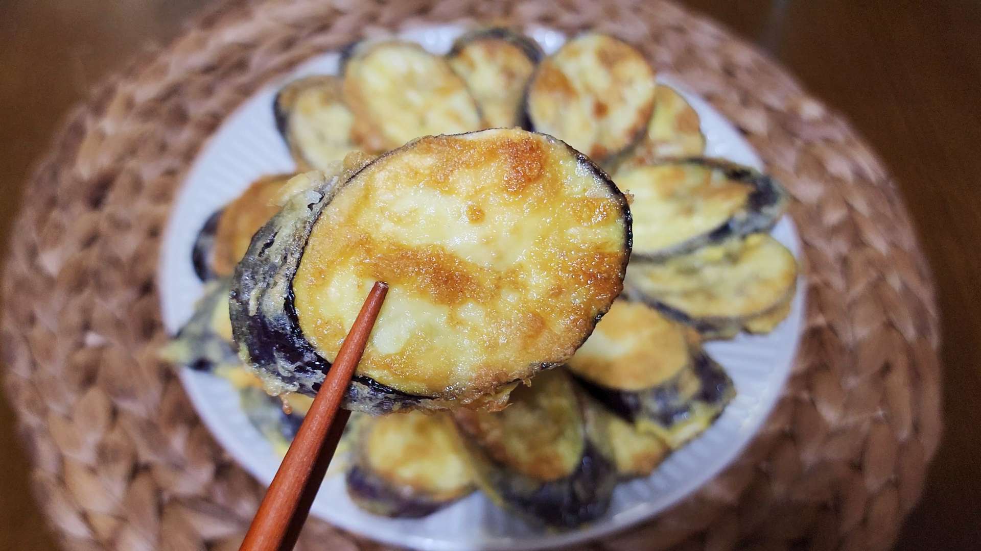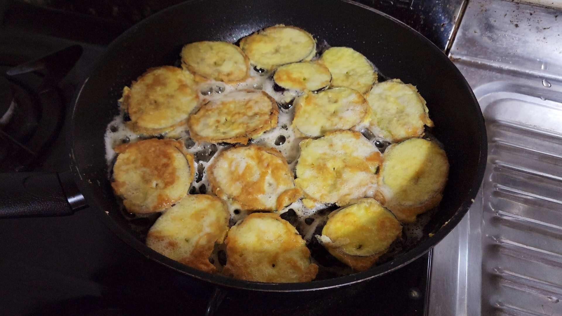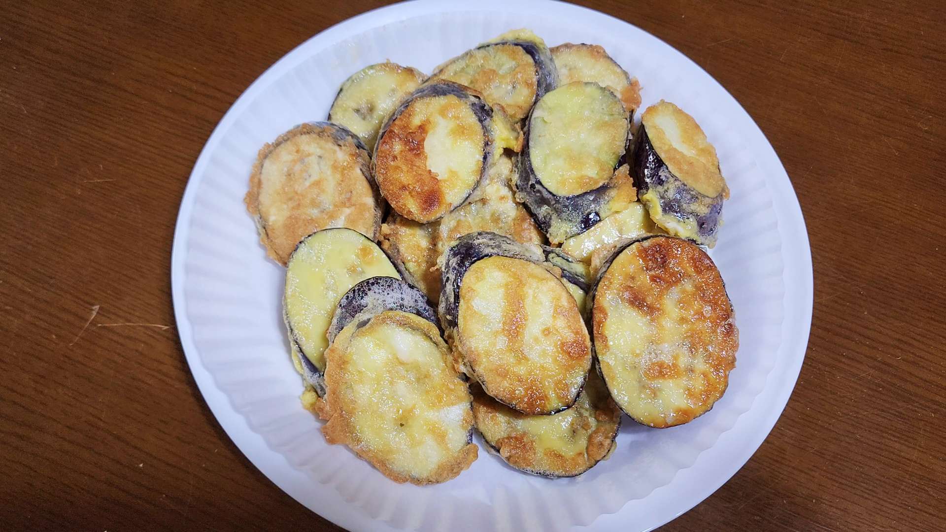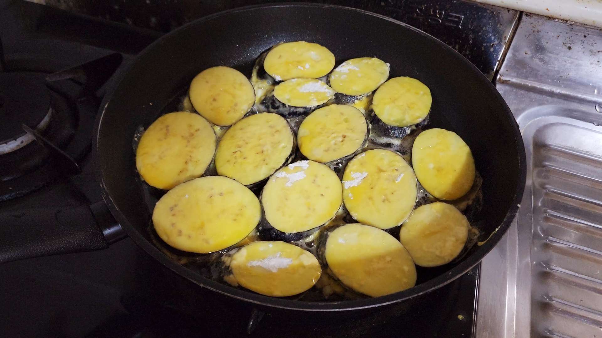 가지전은 젓가락으로 눌러 살짝 들어갈 정도가 되면 꺼내줍니다.