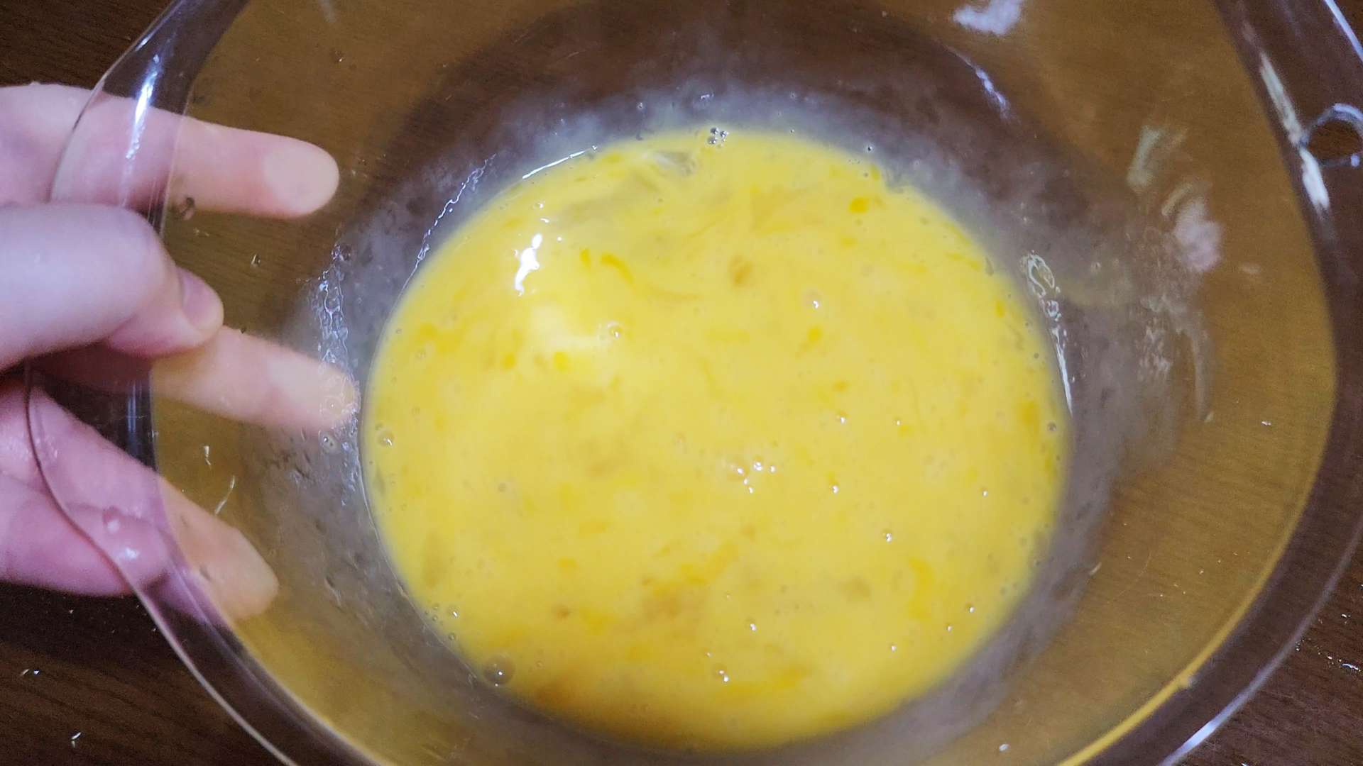 볼에 계란 4개, 소금 한꼬집을 넣고 섞어줍니다.