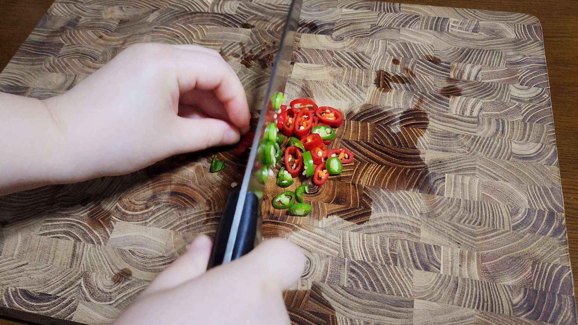참기름 1T, 청고추 1/2개, 홍고추 1/2개, 통깨