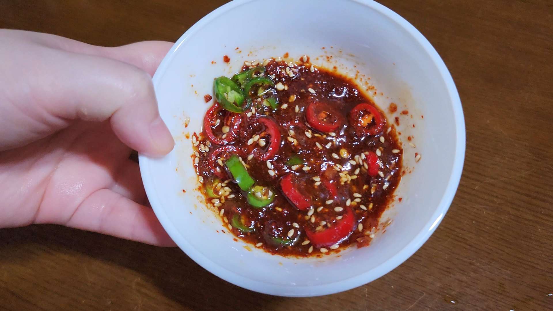 양념장: 고춧가루 0.5T, 간장 2T, 다진 마늘 0.5T,