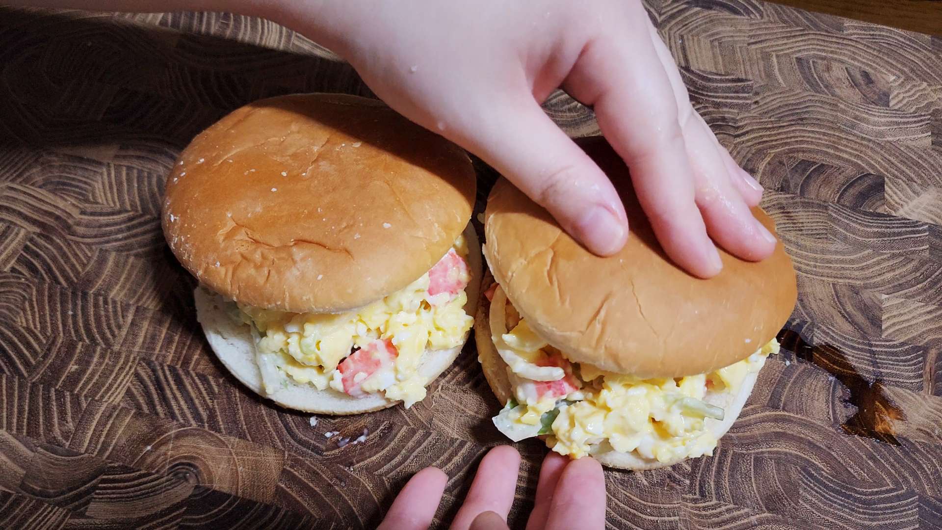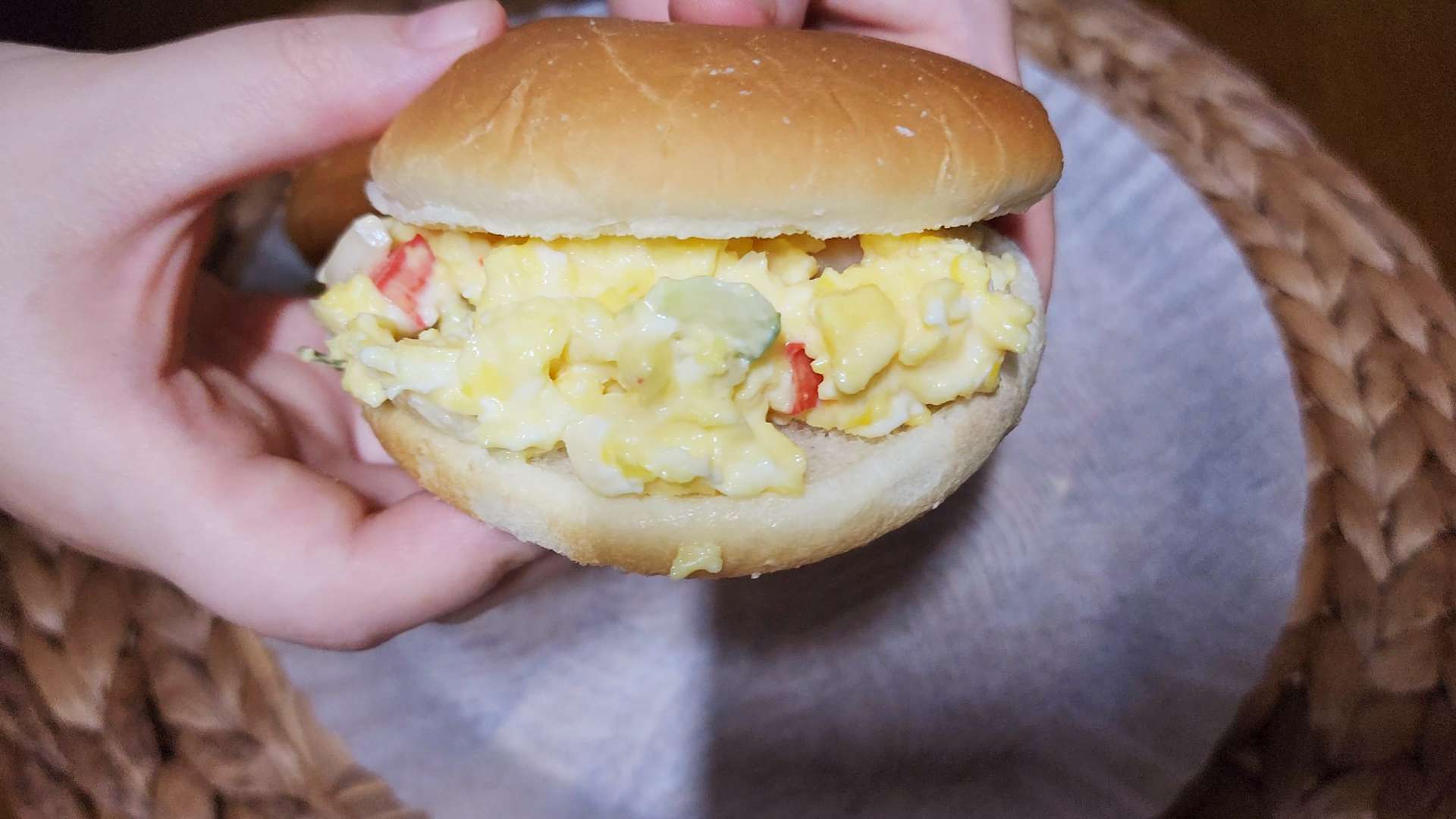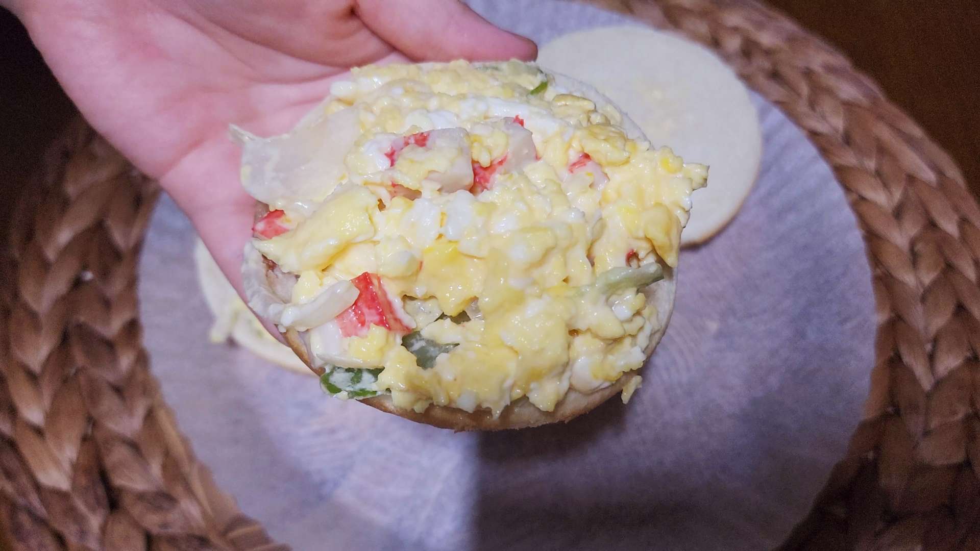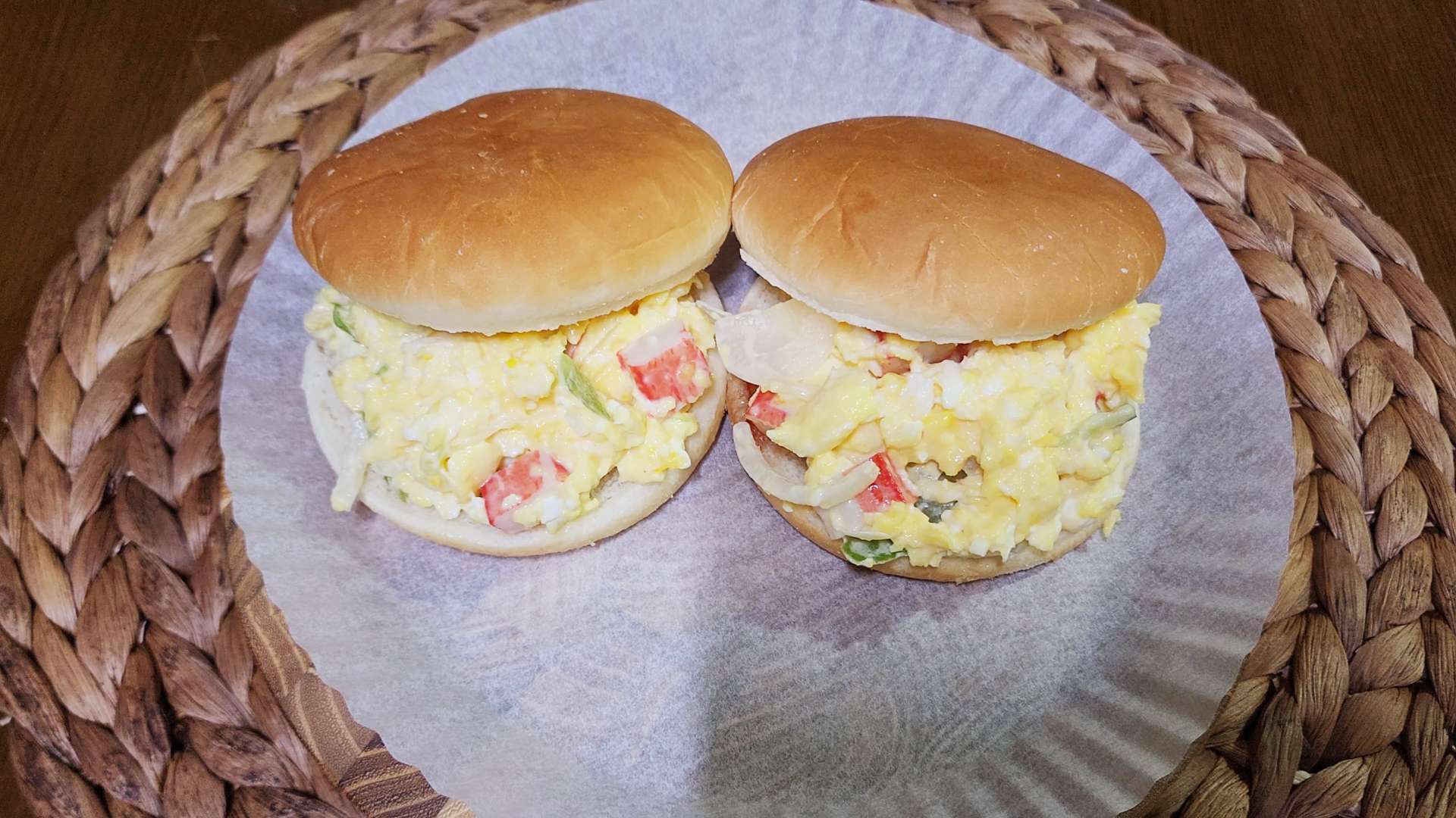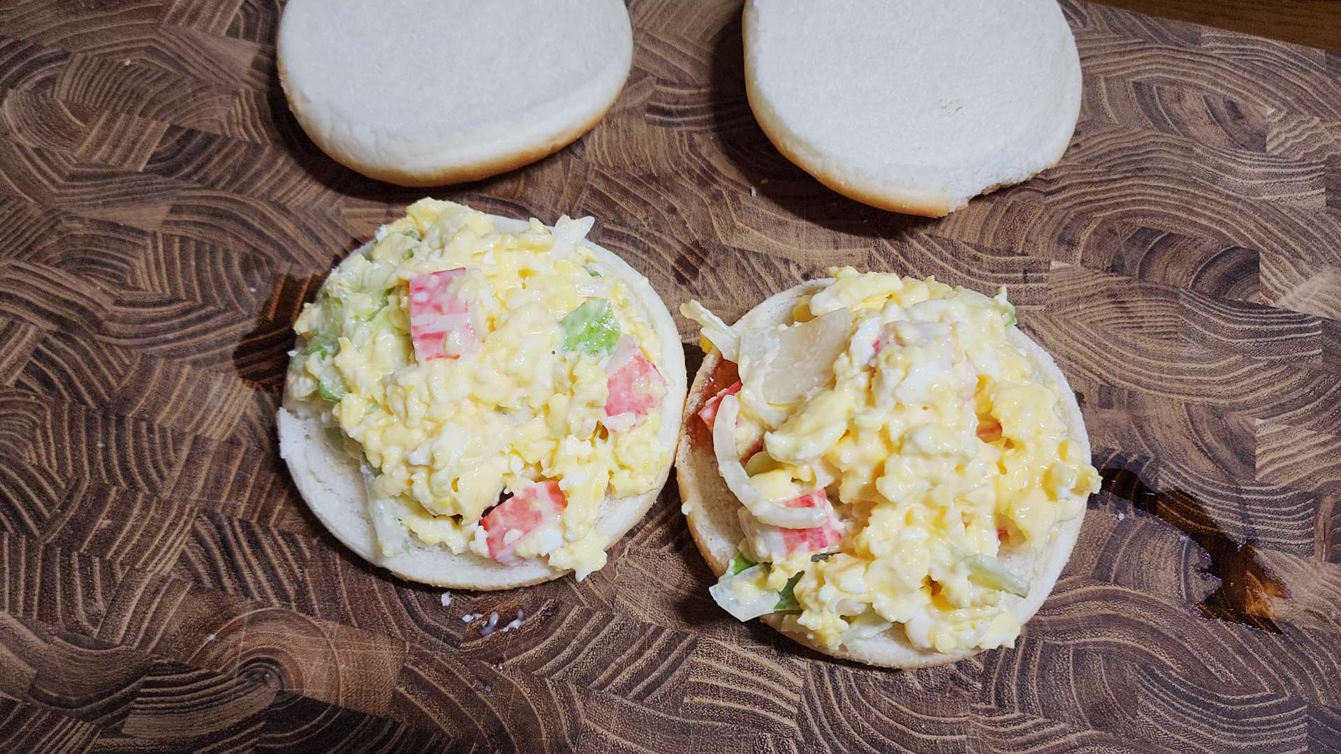 재료: 모닝빵, 잼, 계란 4개, 게맛살 2개,