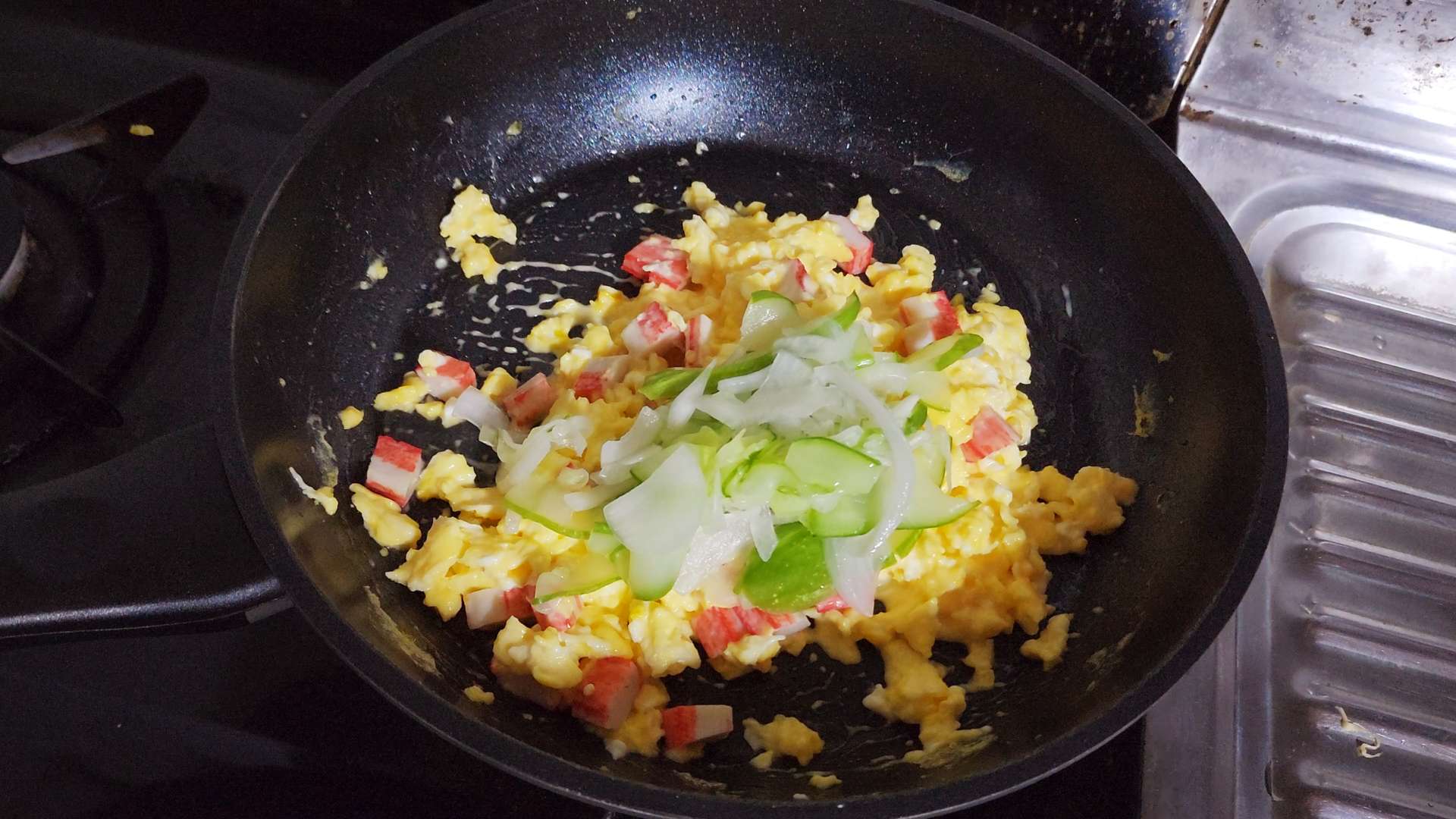 게맛살, 오이양파절임, 절임물 1T를 넣고 섞어줍니다.