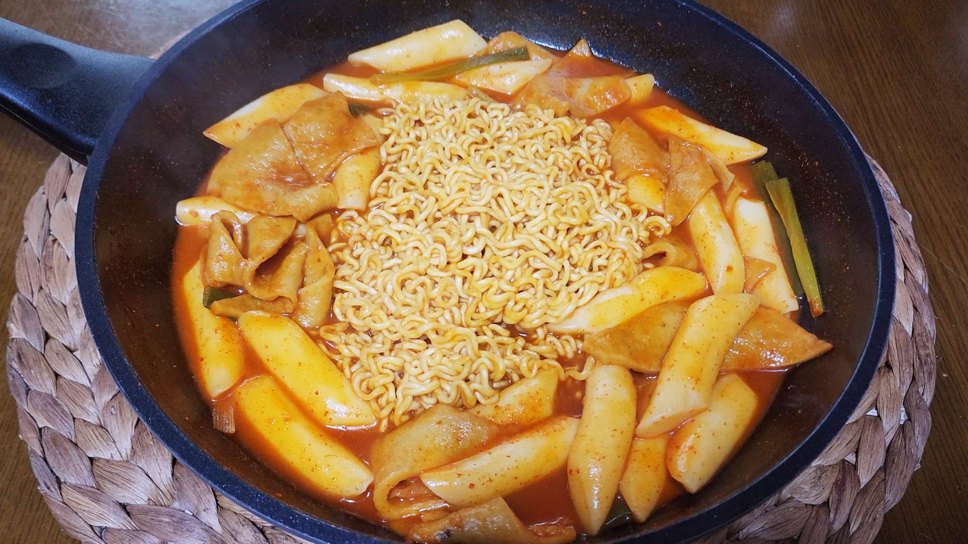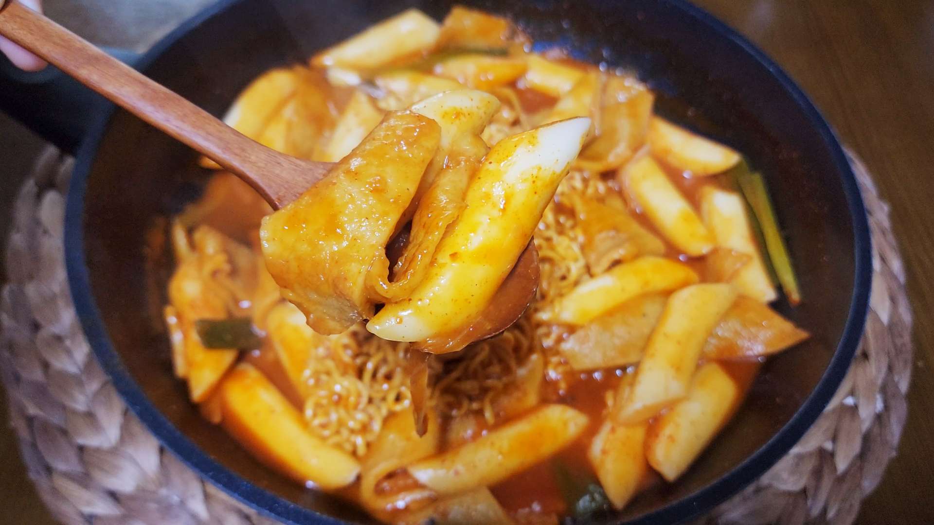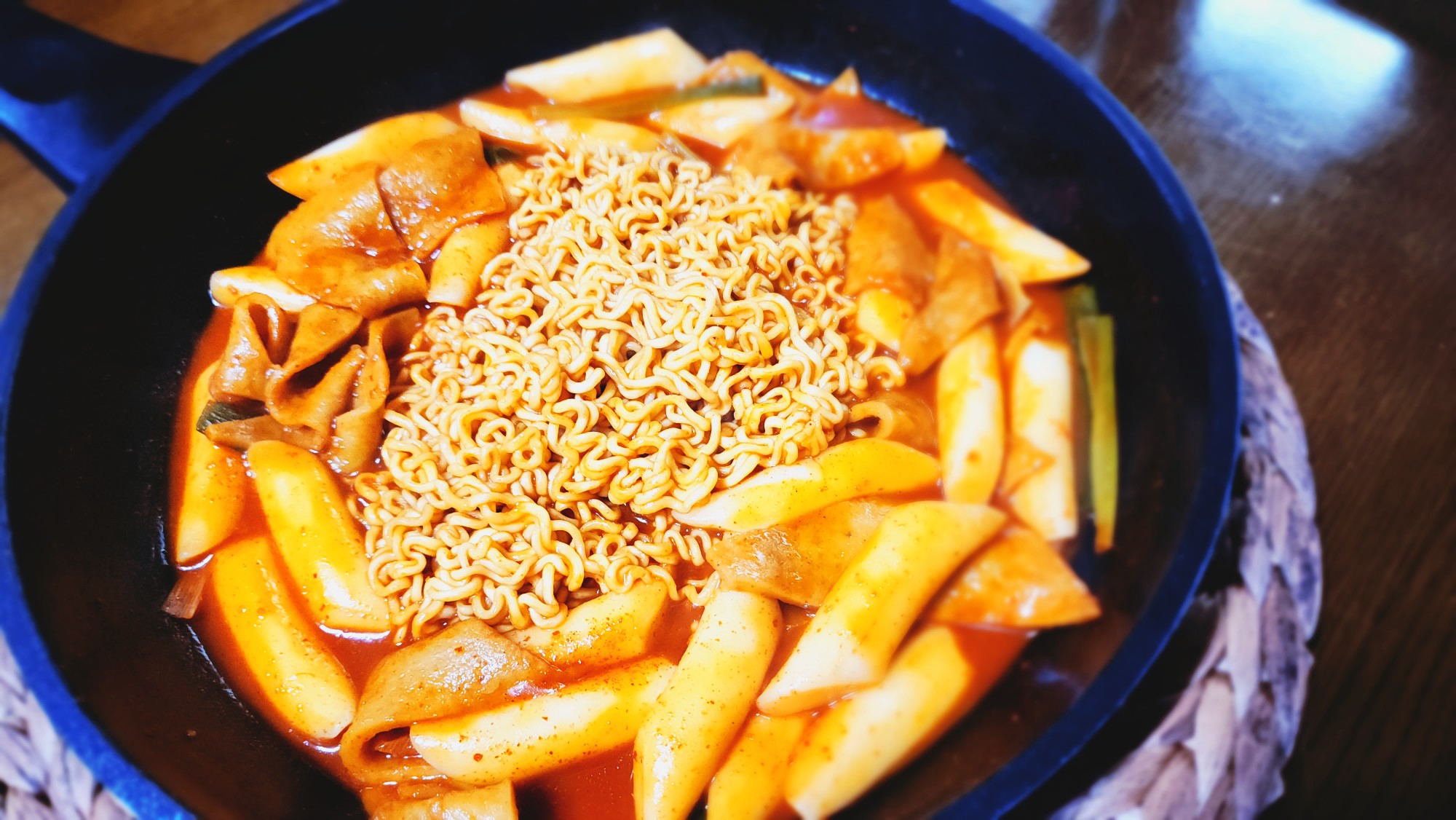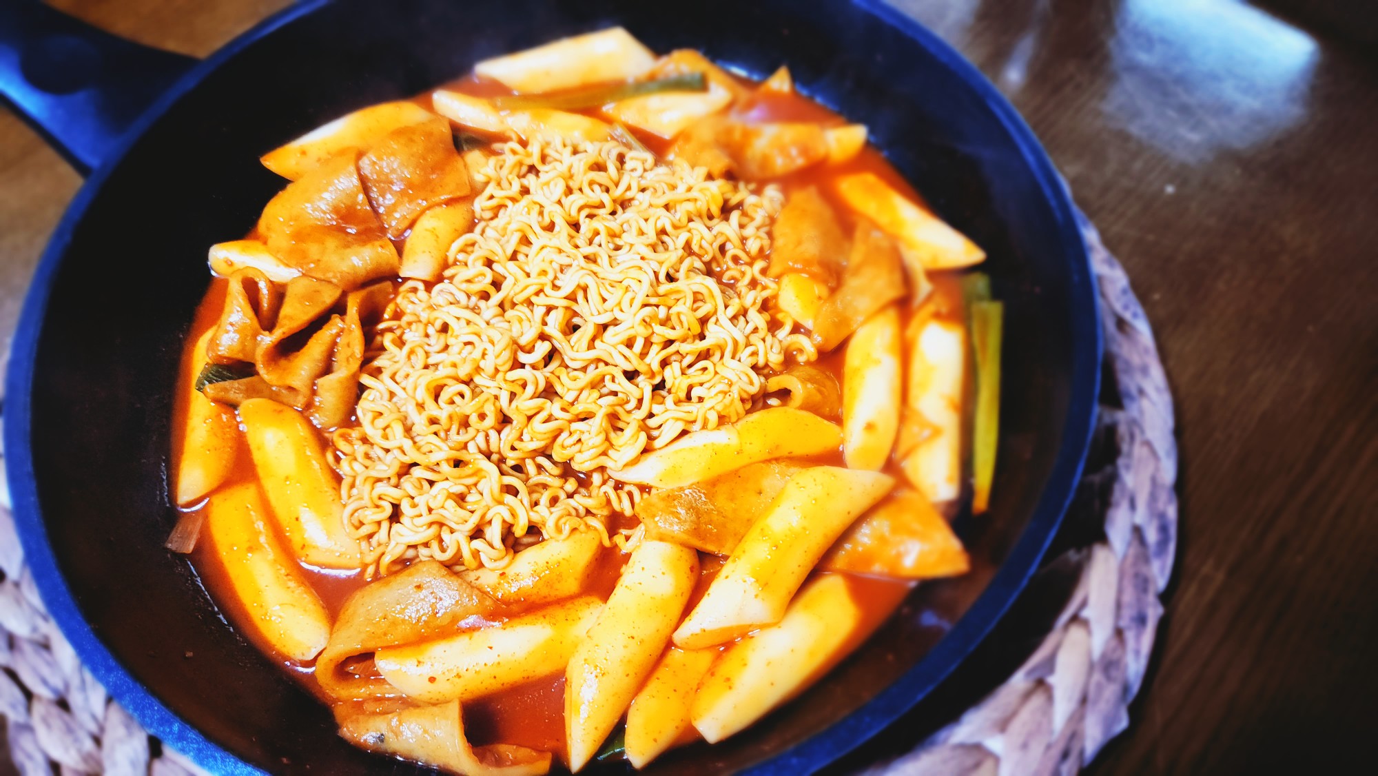 매콤달콤짭조름한 양념에 쫄깃한 떡과 어묵, 라면을 같이 먹으면 맛있답니다.