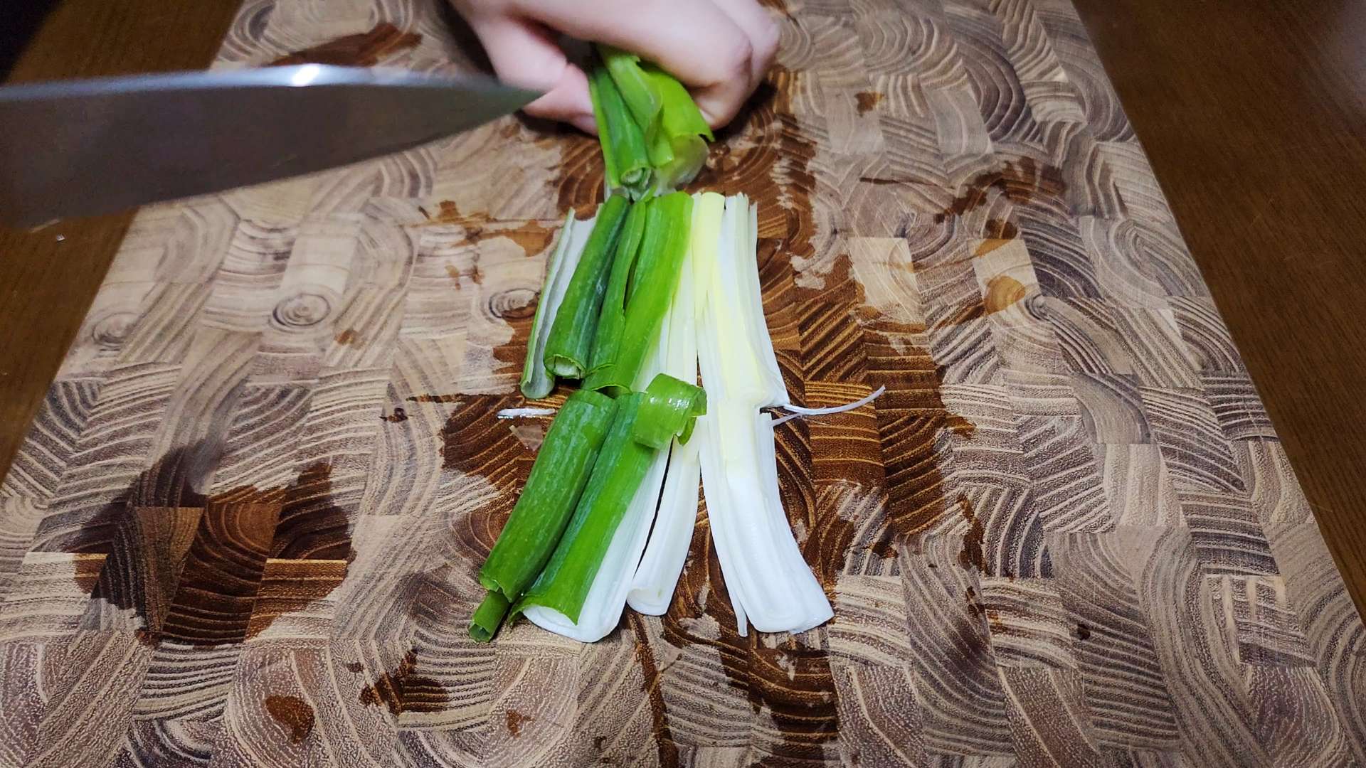 대파는 길게 자른 뒤 5cm 길이로 잘라줍니다.
