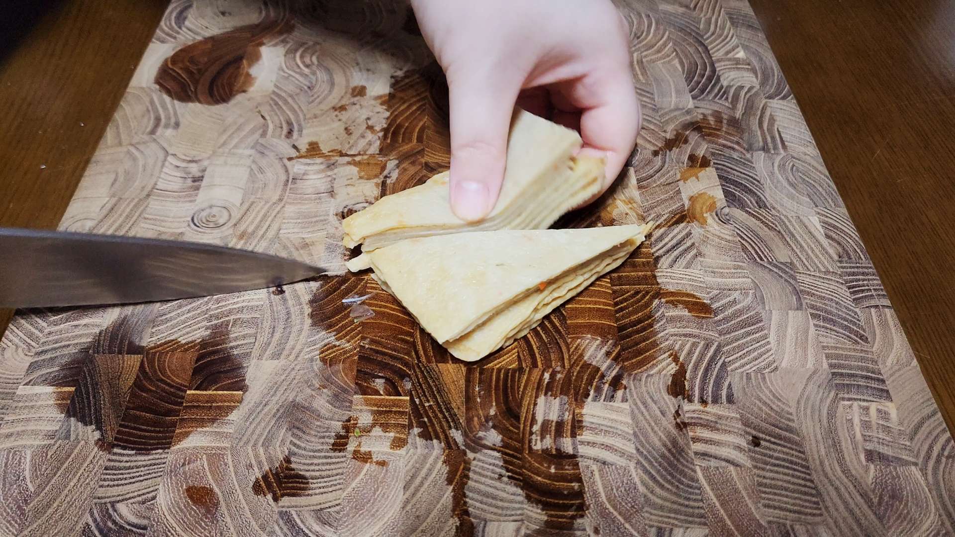 어묵은 1/4로 썬 뒤 삼각형 모양으로 잘라줍니다.