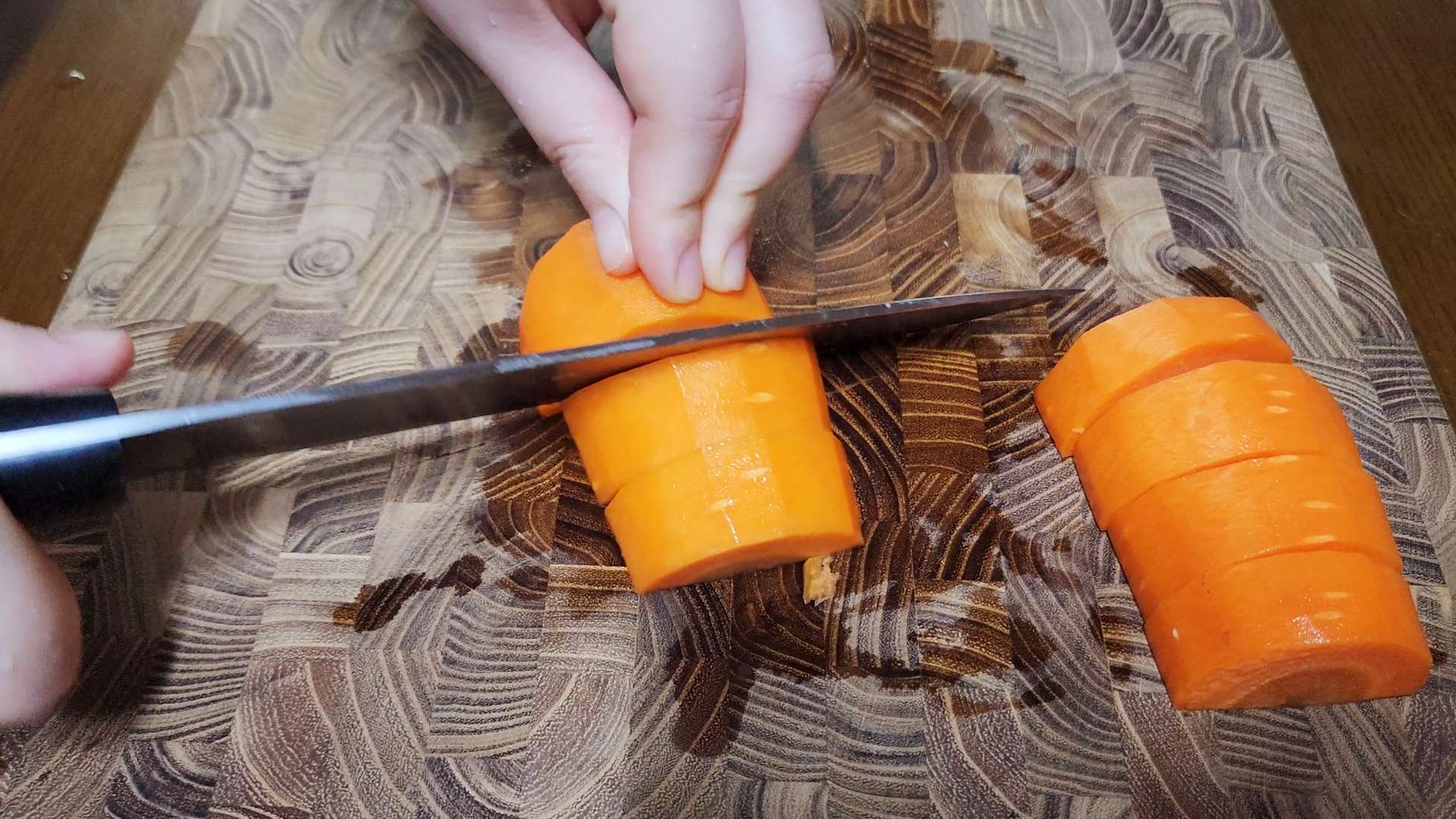 당근은 먹기 좋은 크기로 잘라줍니다.