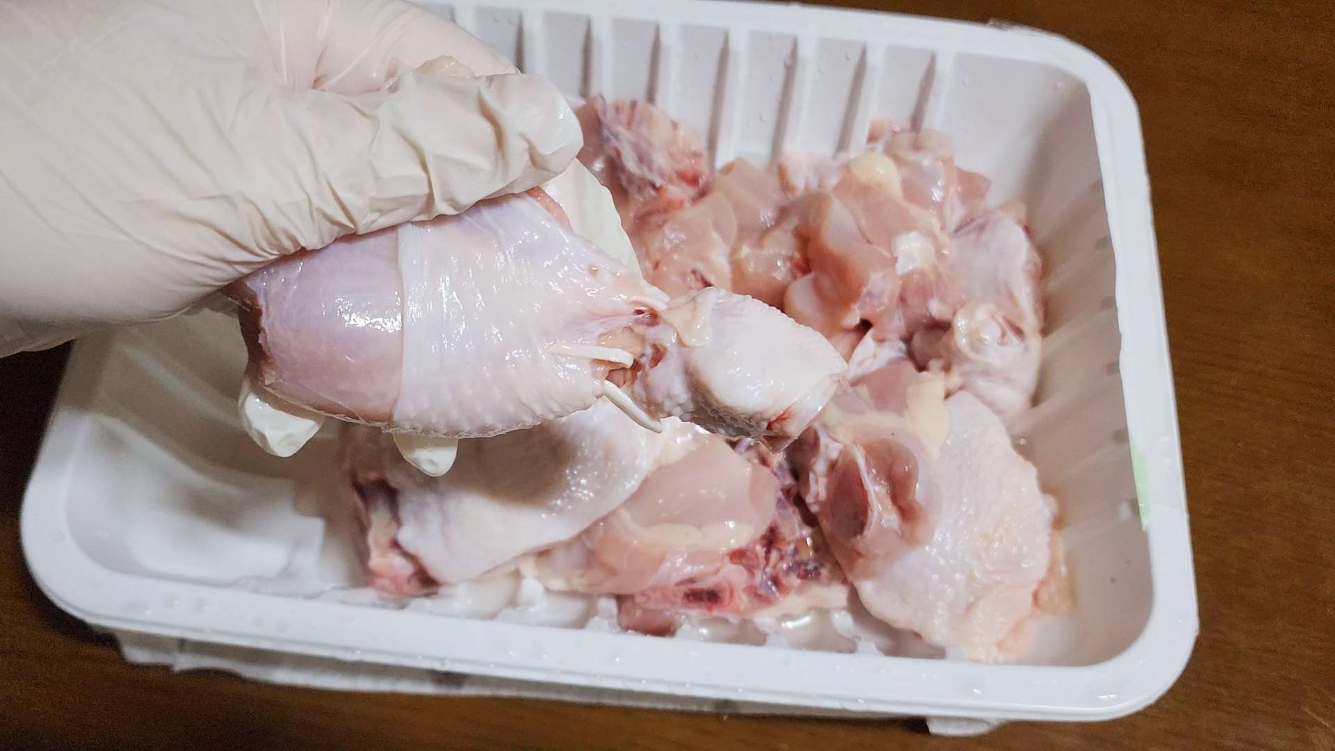 닭다리는 가위로 아킬레스건 부분을 잘라줍니다.