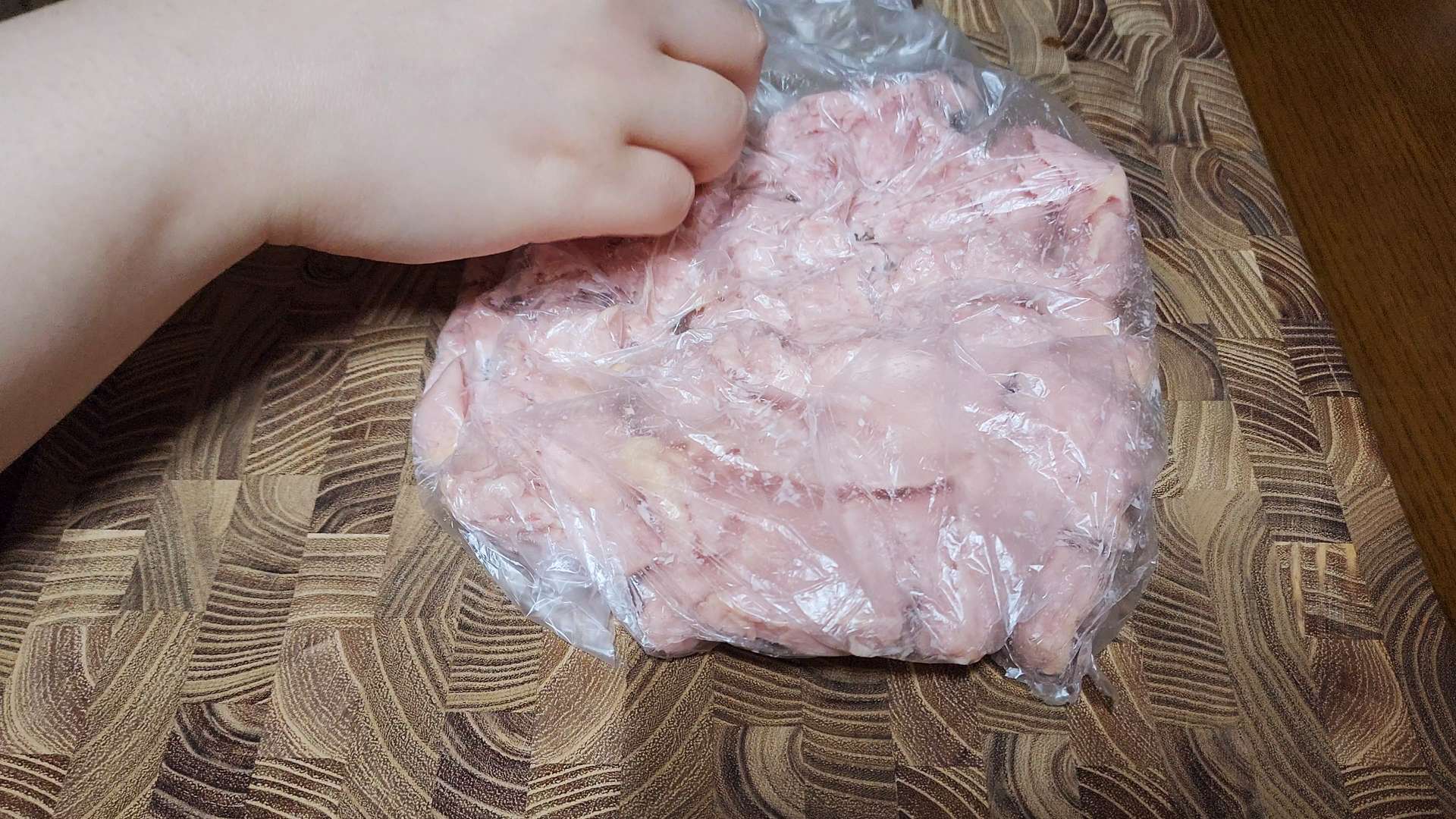 스팸은 위생 봉투에 넣어 손으로 으깨줍니다.