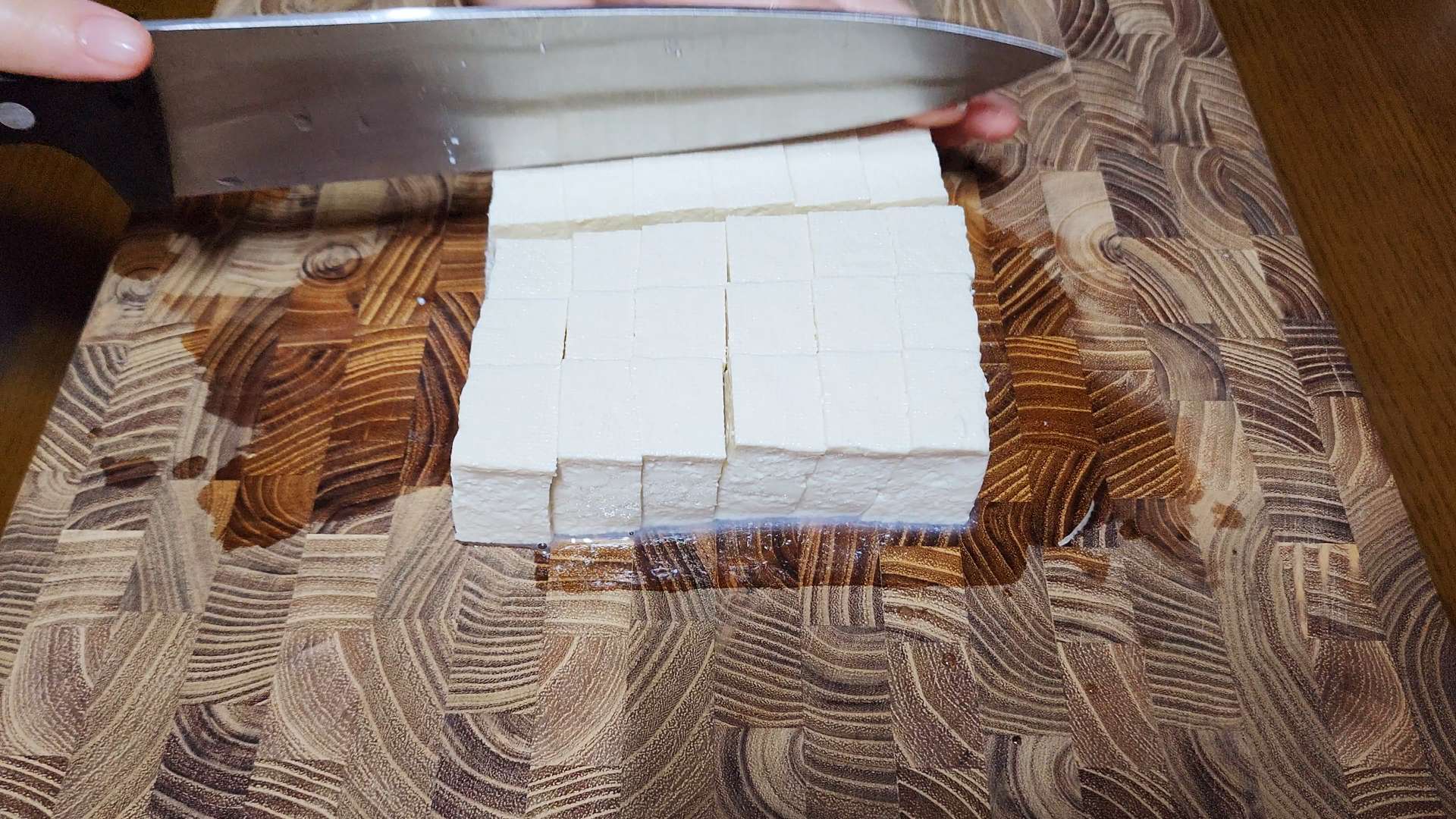 두부는 깍둑 썰어줍니다.