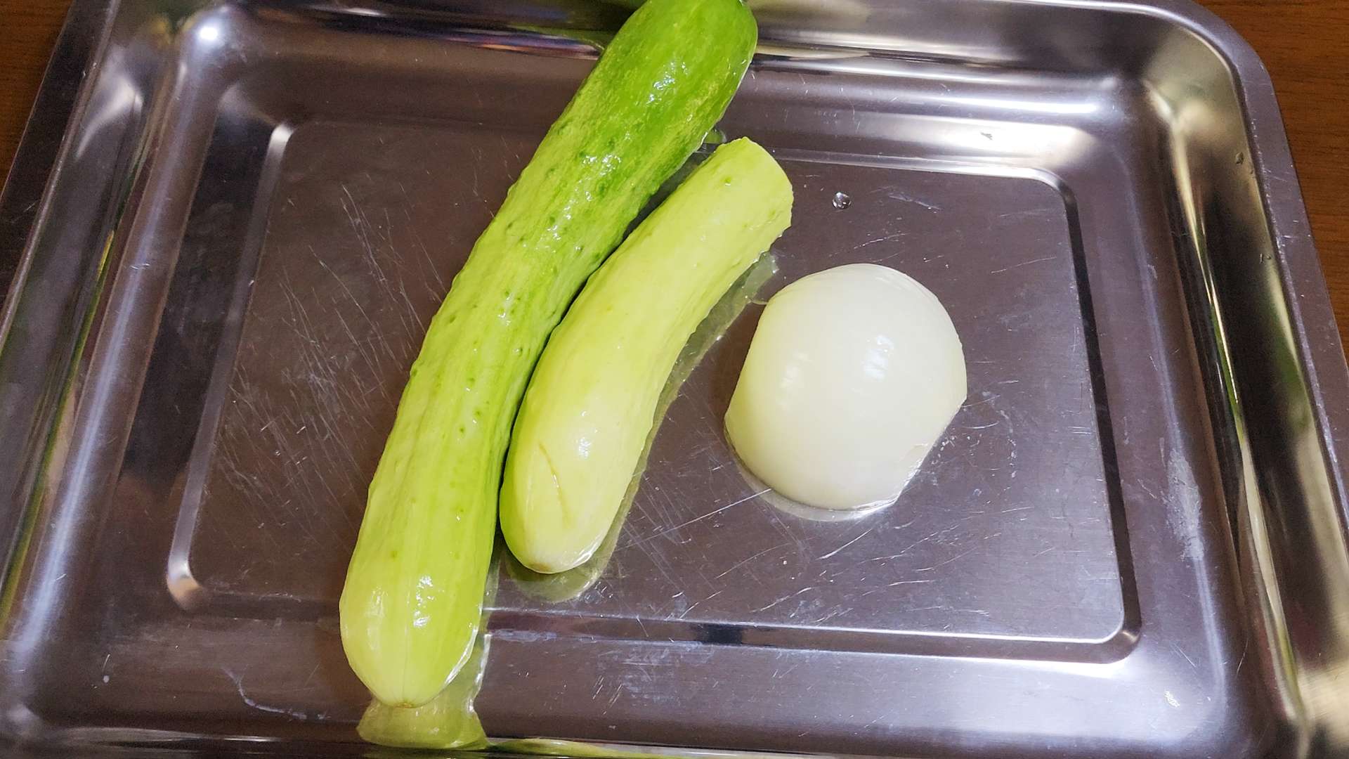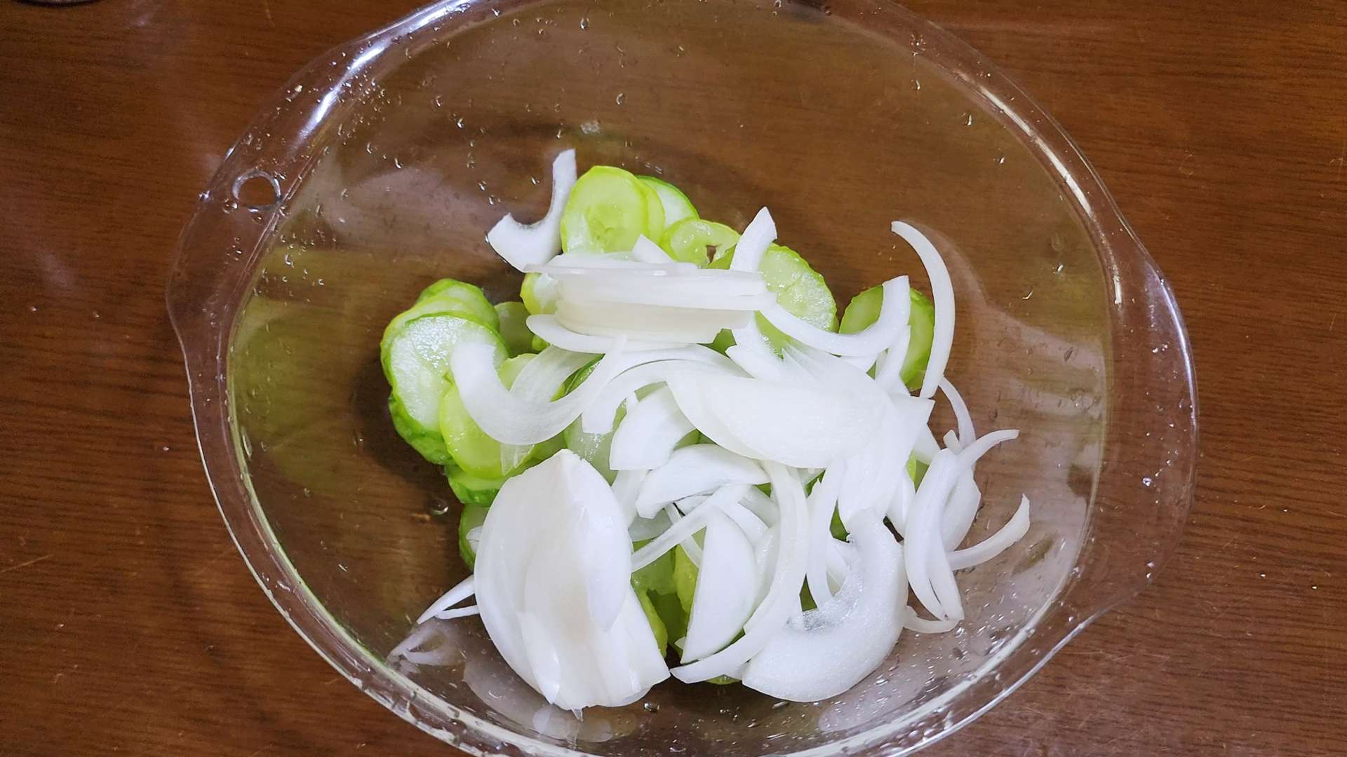 재료: 오이 한개 반, 양파 1/2개