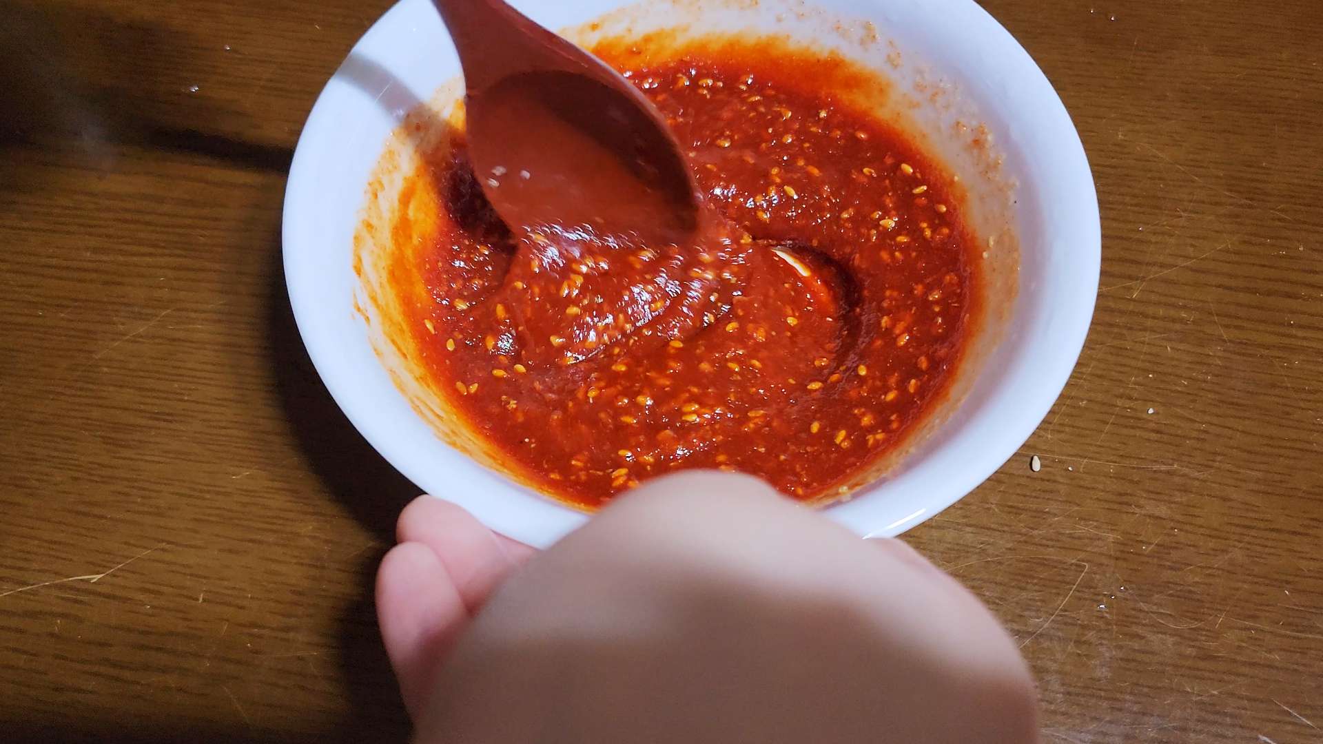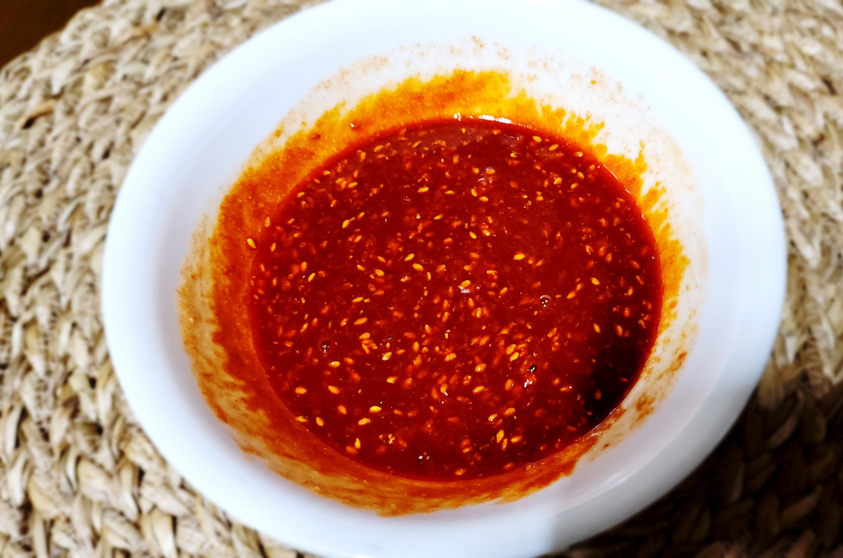 재료: 고추장 듬뿍 2T, 설탕 3T, 식초 3T, 멸치액젓 1t, 갈은 깨