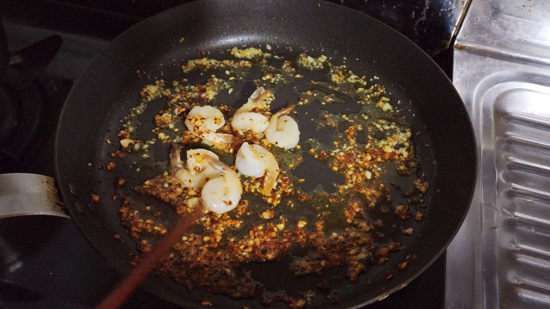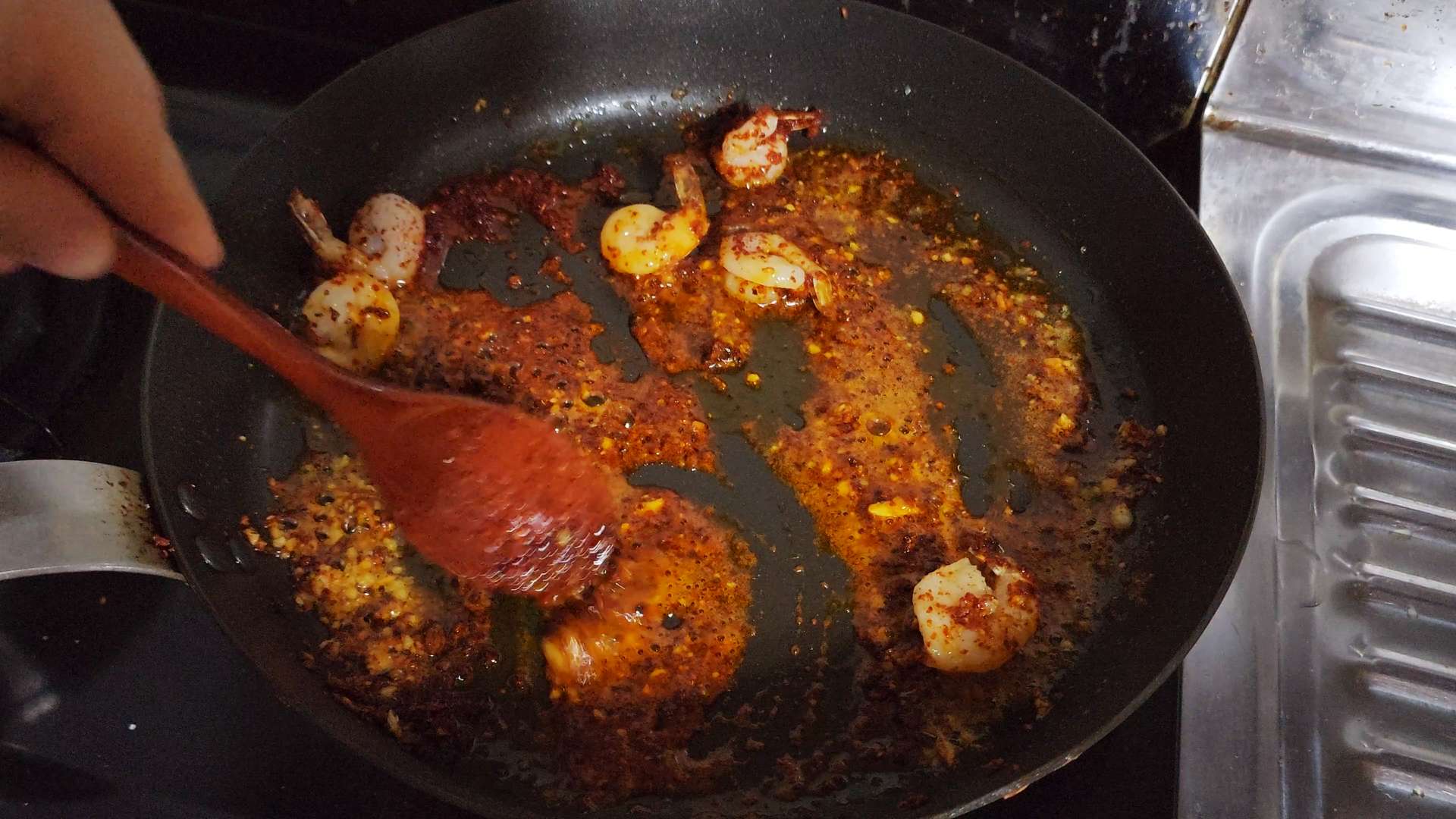 냉동새우를 넣고 약불에서 2분 볶아줍니다.