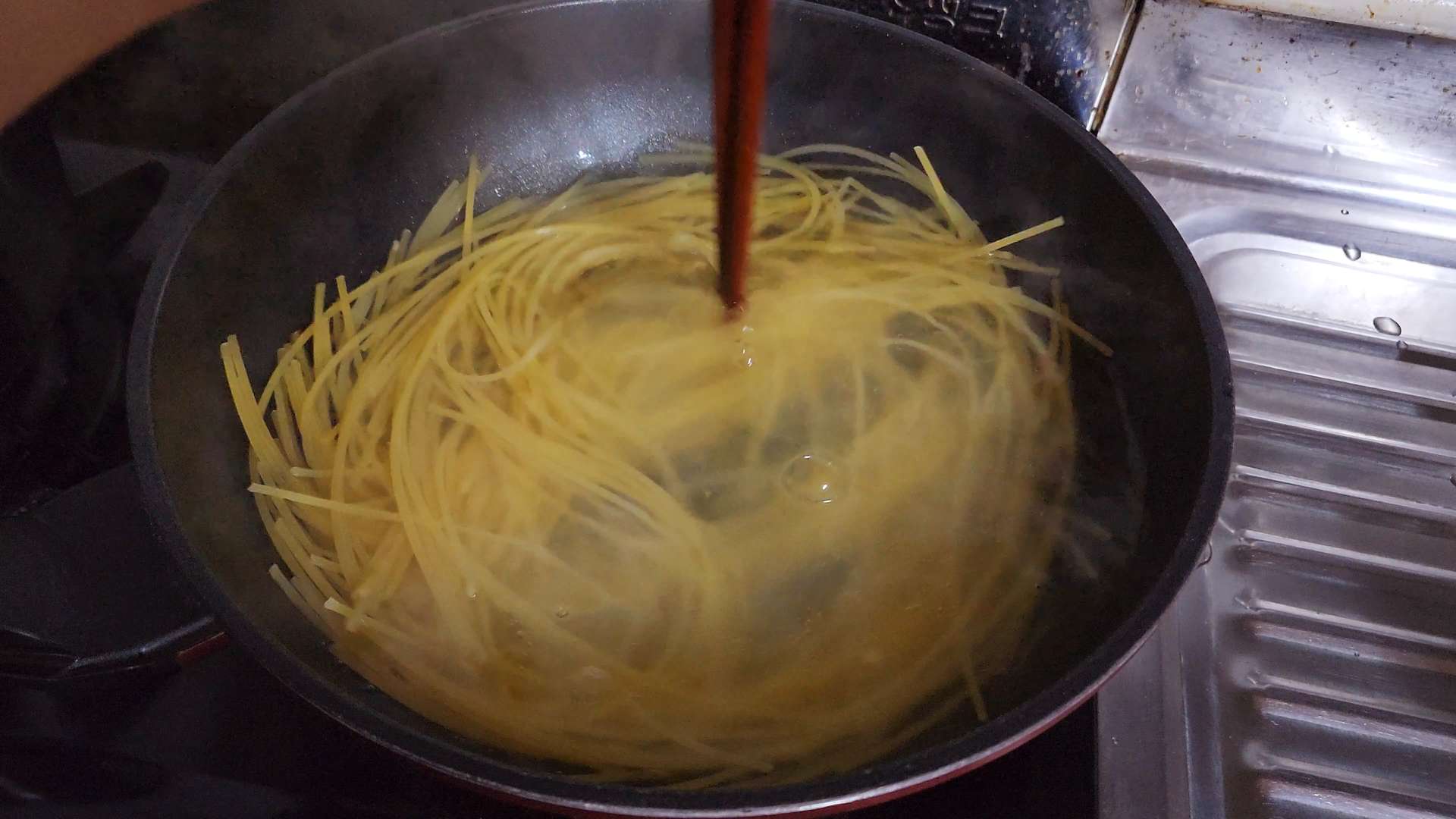 물이 끓으면 굵은 소금 1T, 스파게티 면 2인분을