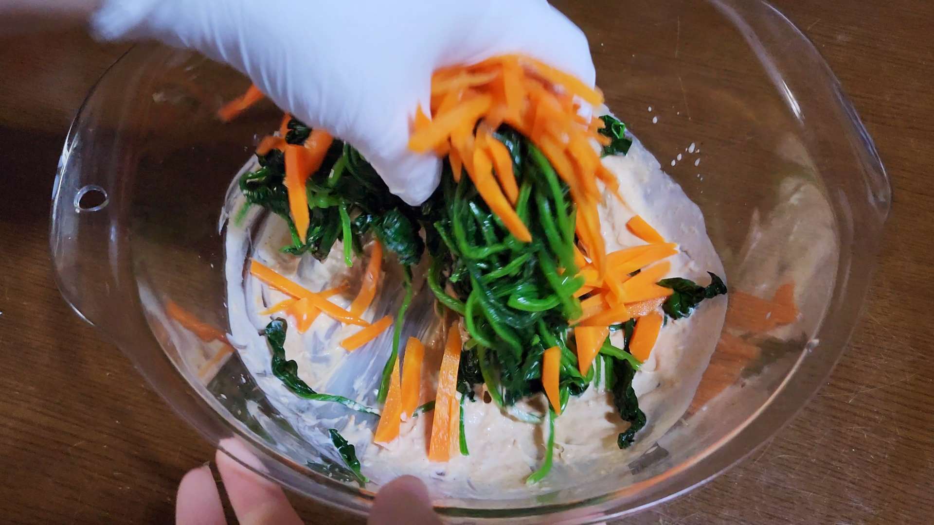 고소하고 부드러운 초간단 샐러드 시금치 당근무침 꼭 만들어보세요.