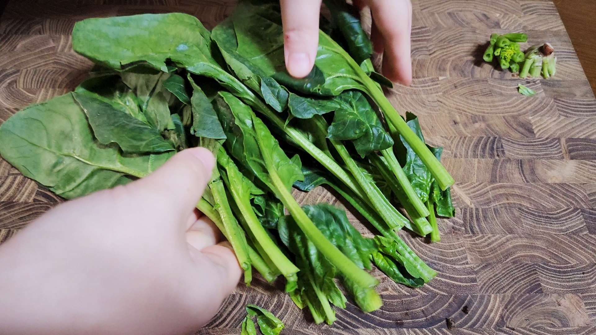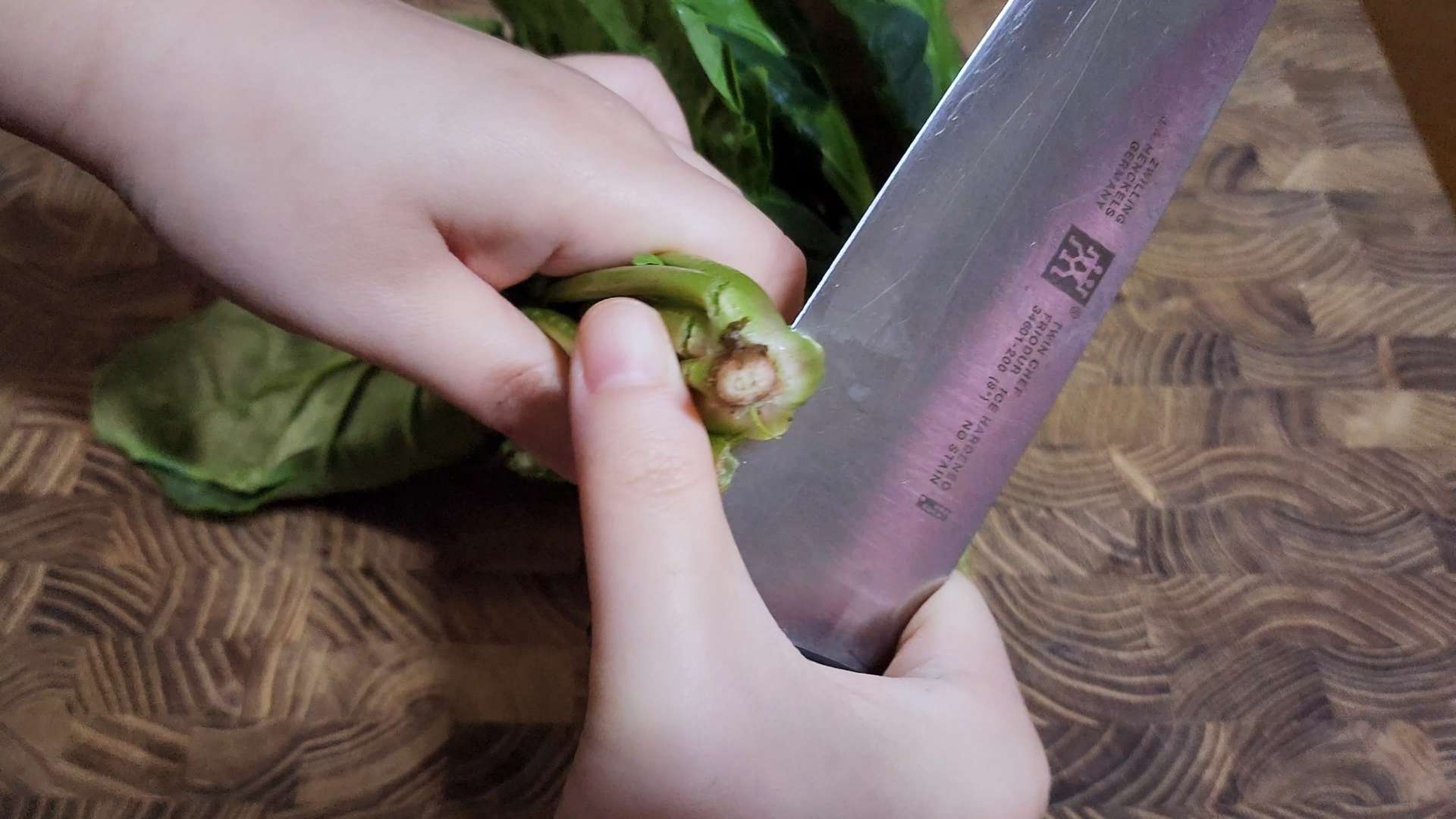 시금치는 뿌리를 자르고 다듬어 줍니다.