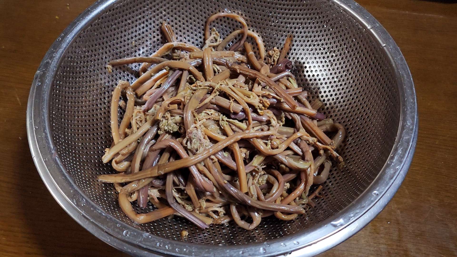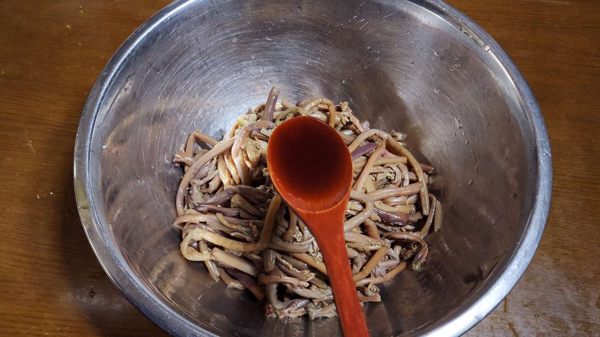 중불로 달군팬에 식용유를 넣고 고사리를 넣고 3분간 볶아줍니다.