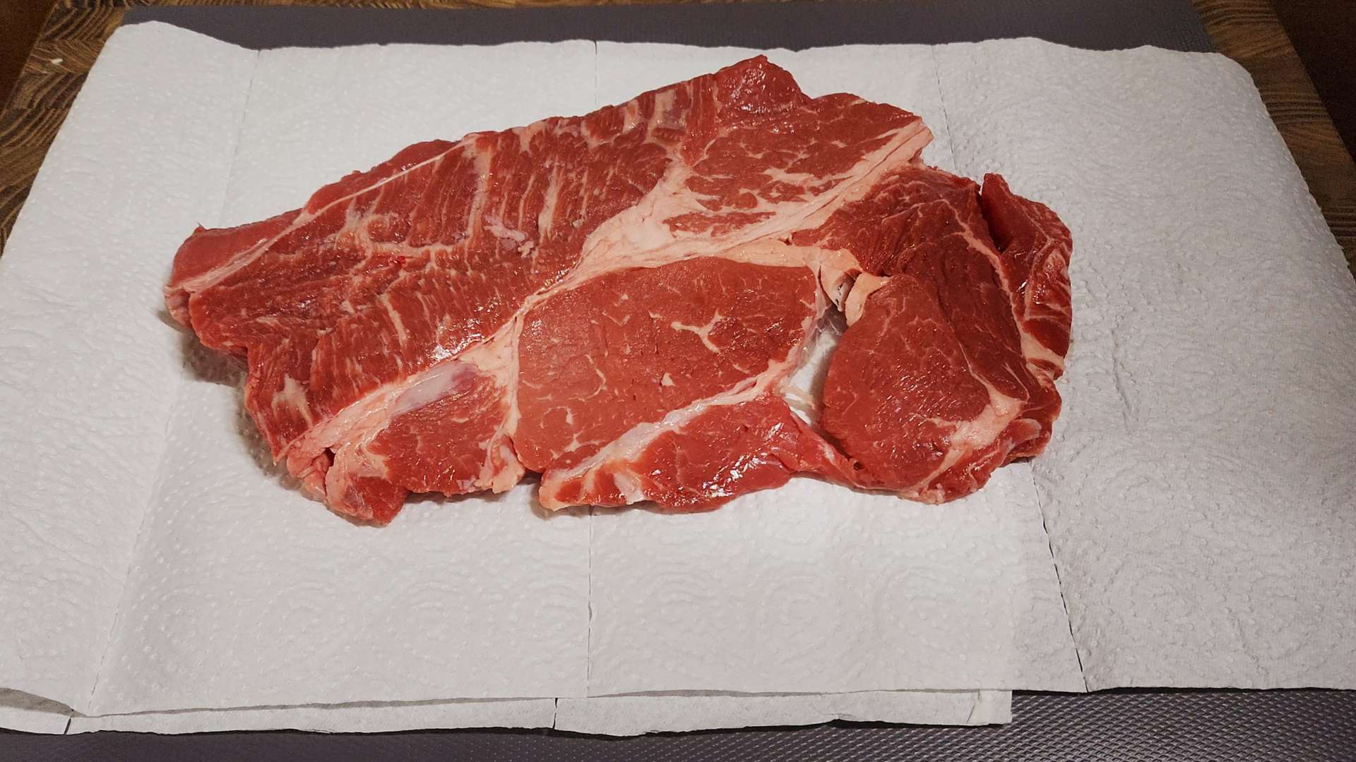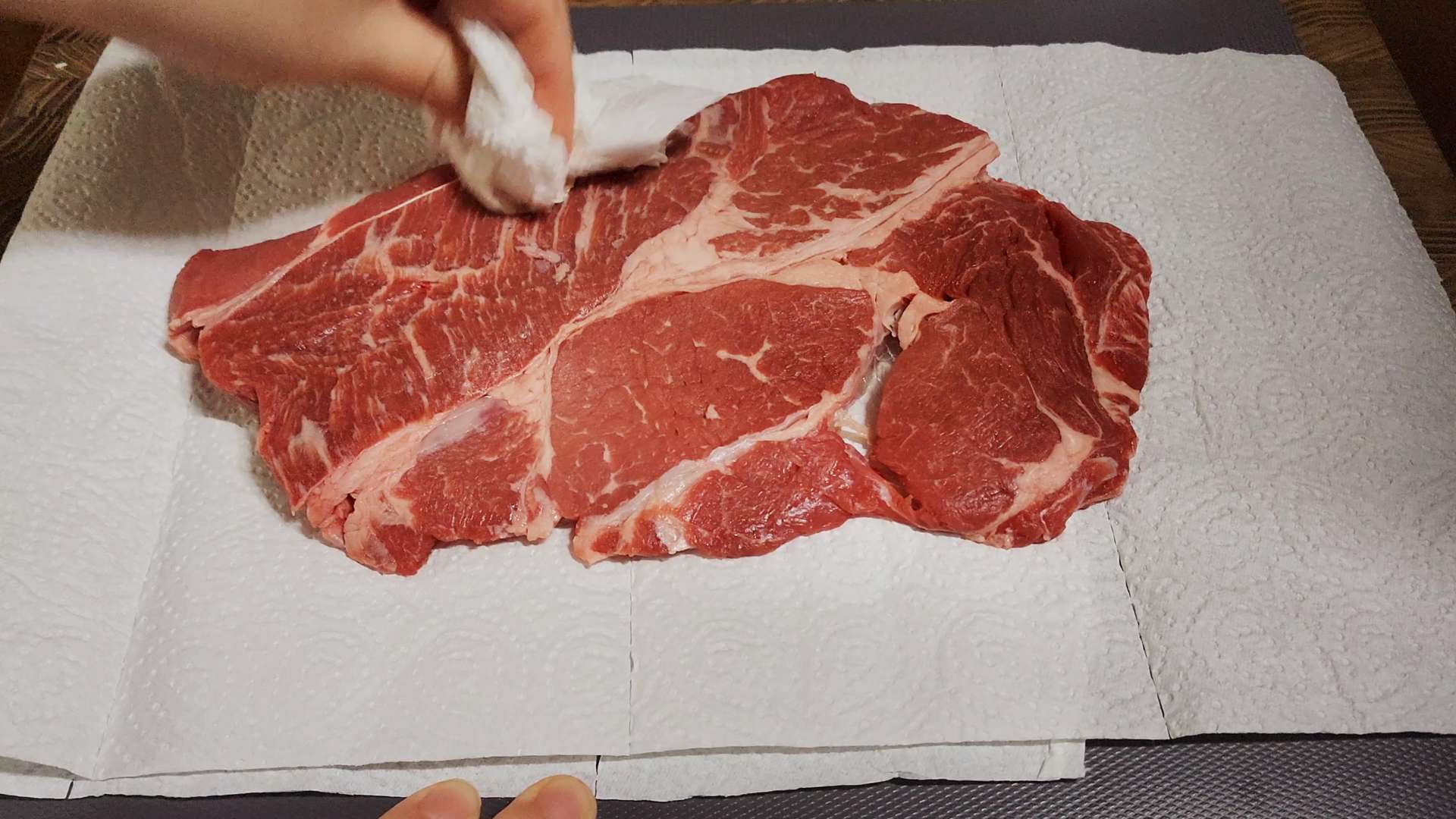 산적용 소고기는 키친타올로 핏물를 제거해줍니다.