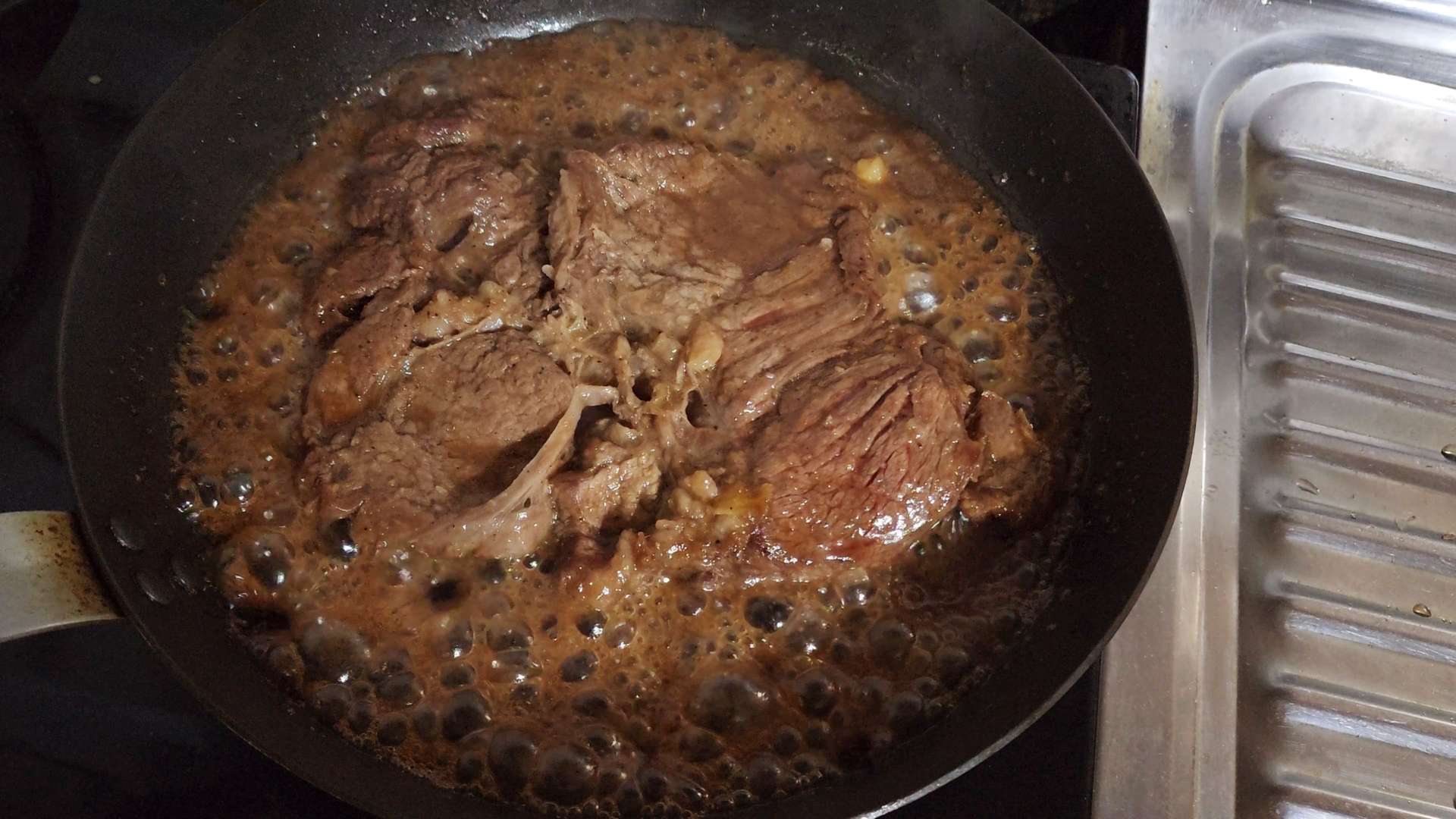 남은 양념을 부어 앞뒤로 노릇하게 익혀줍니다.