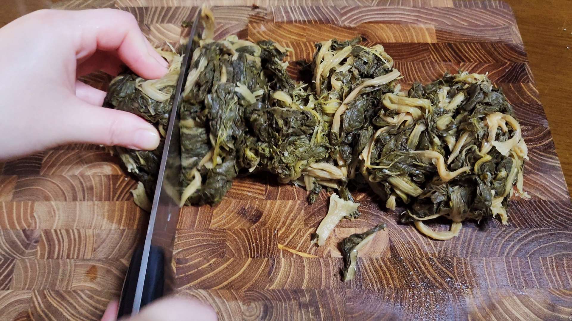 삶은 시래기 300g는 물기를 짜고 적당한 크기로 잘라줍니다.