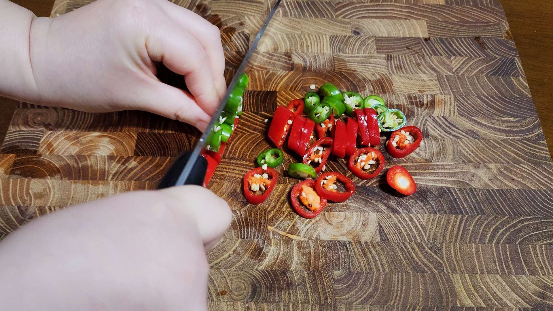 청양고추, 홍고추는 송송 썰어줍니다.