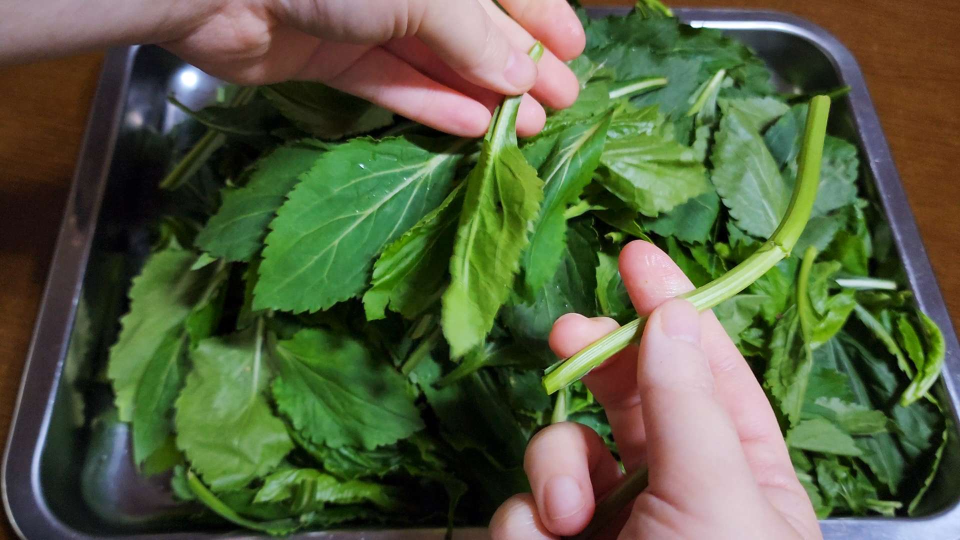부지갱이는 굵거나 억센 줄기는 자르고 누런 잎도 제거해줍니다.