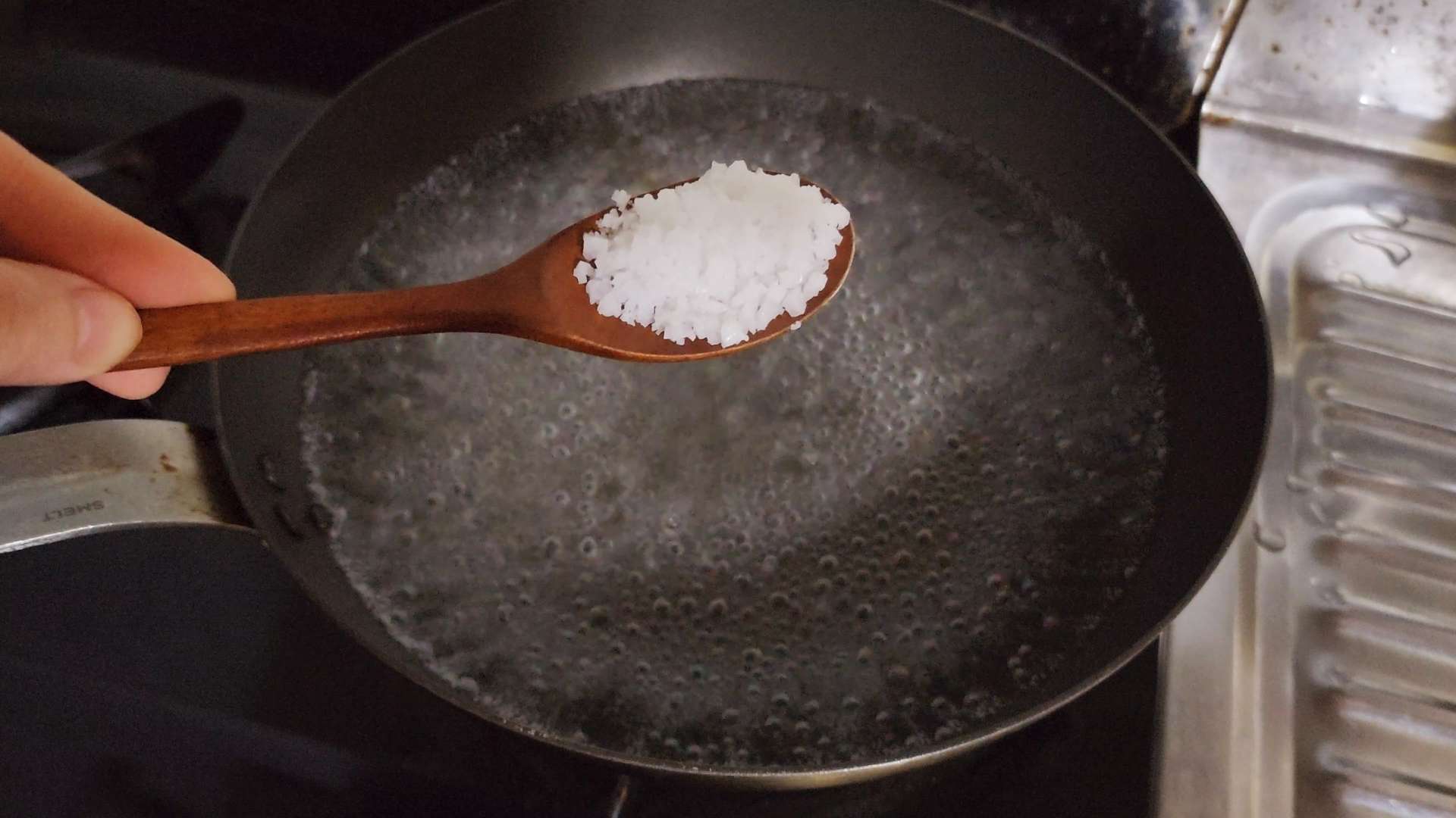 끓는물에 굵은소금 1T, 부지갱이를 넣고 1분 정도 데쳐줍니다.